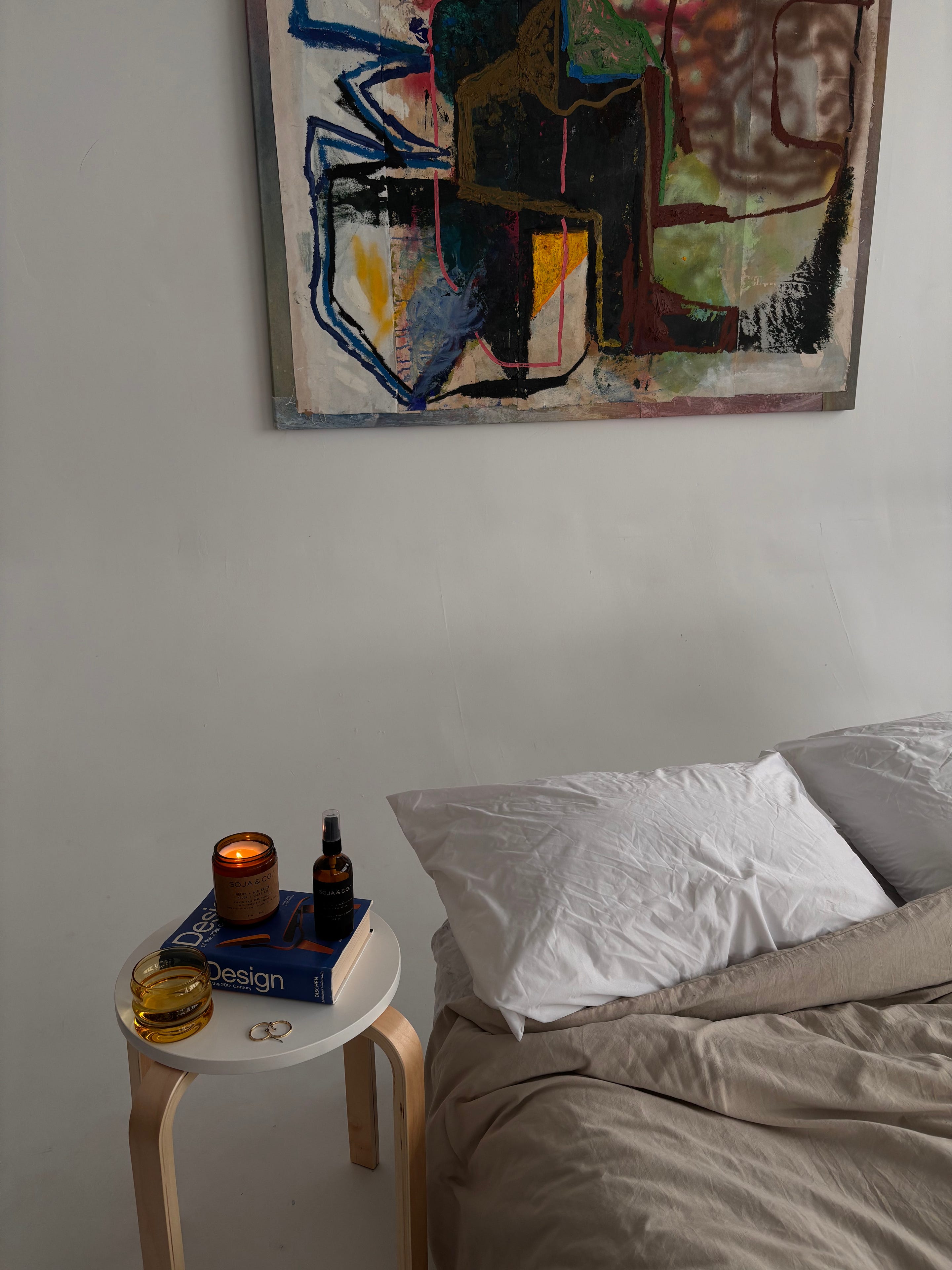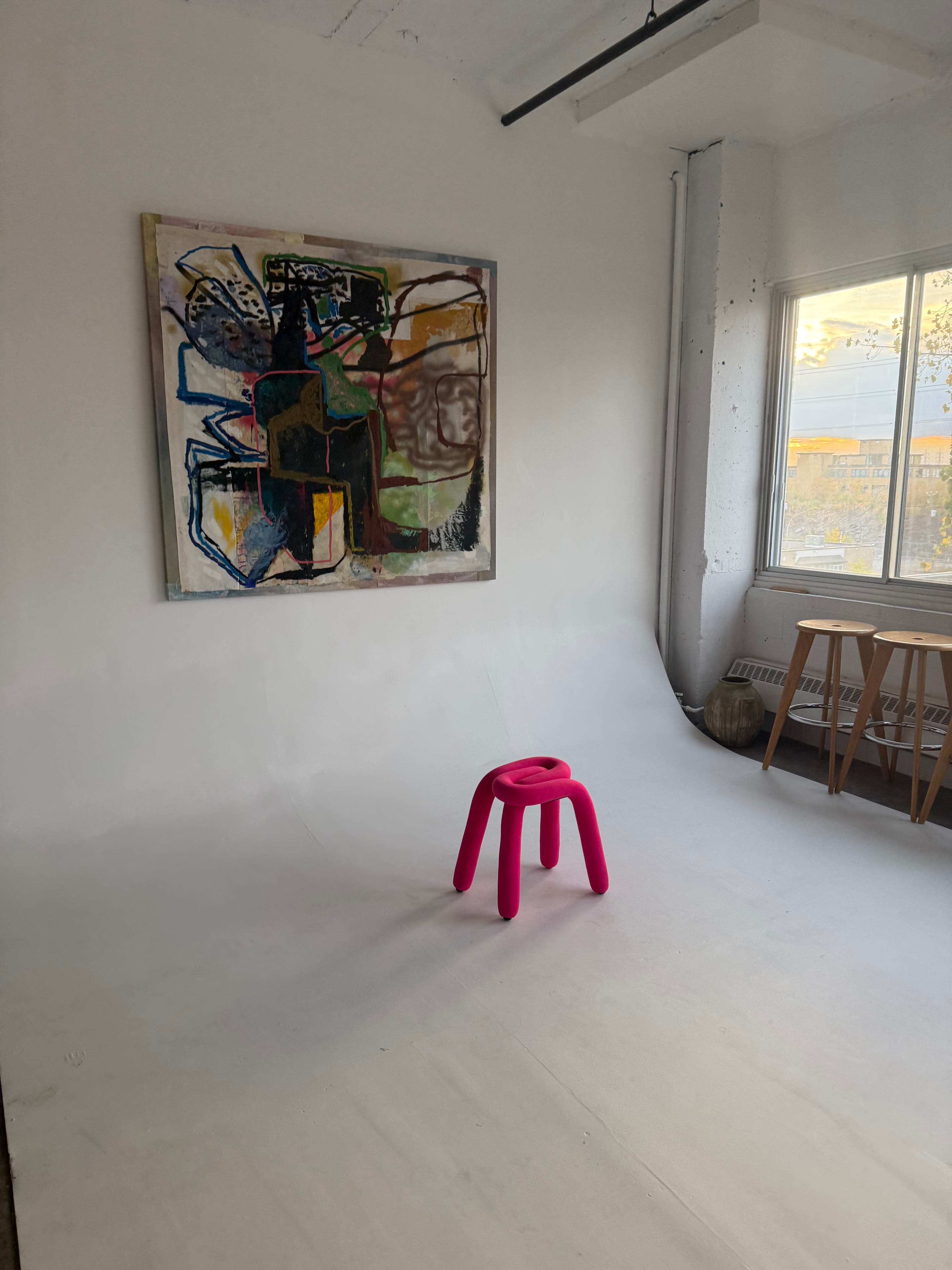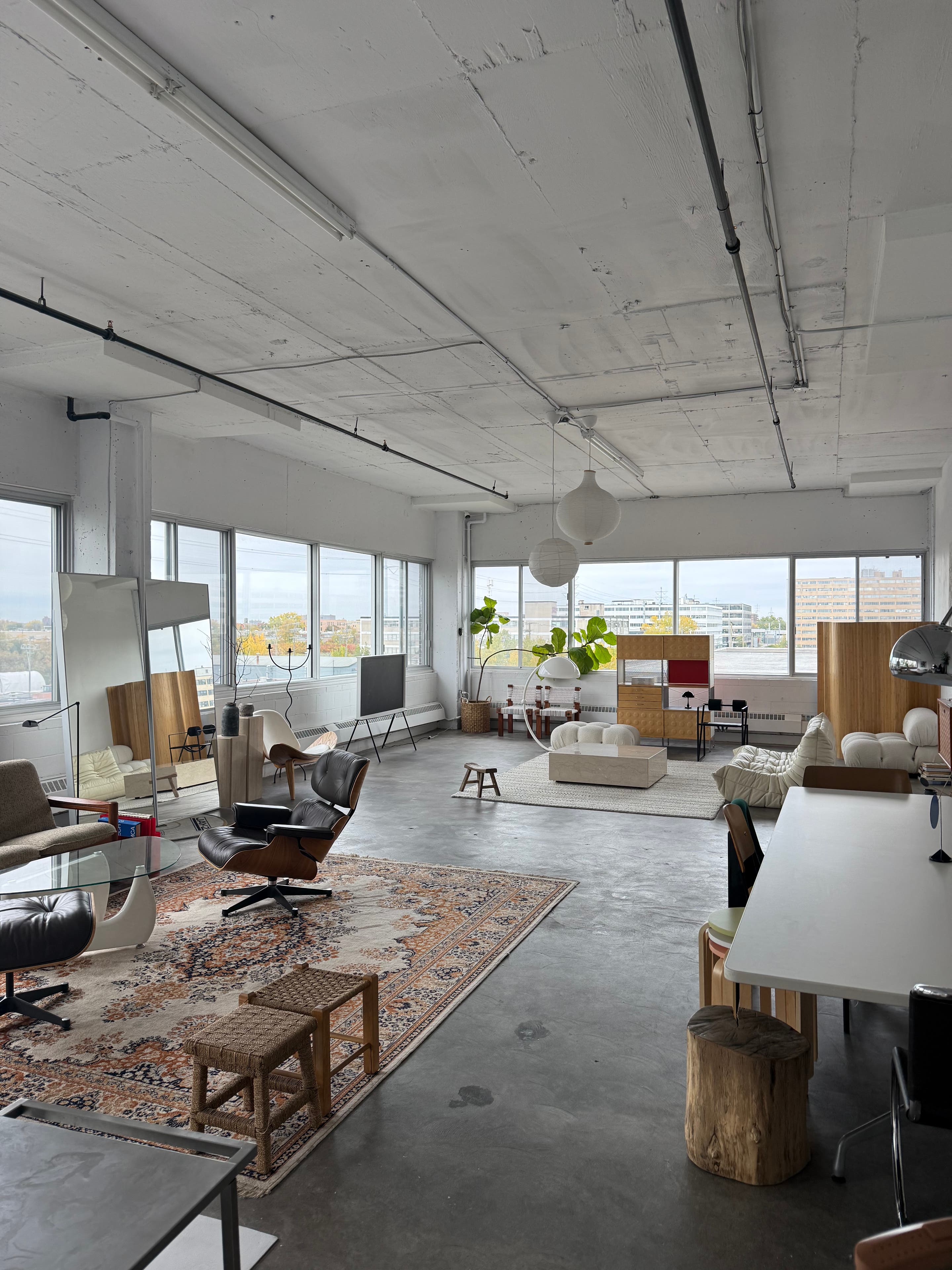 Our studio is immersed with abundant sunlight and creative energy. The space features soft rendered walls paired with polished sealed concrete floors. The custom detailing works to bring unique textures forward like never before in a creative studio. Located in a cornet unit of what used to be a factory the industrial architecture combined with the oversized windows surrounding the space make a statement on their own. The palette of calming neutral tones is design to match any aesthetic. We have chosen each piece of furniture to bring a sense of wholeness to the space, with a minimalist mindset and salutogenic design