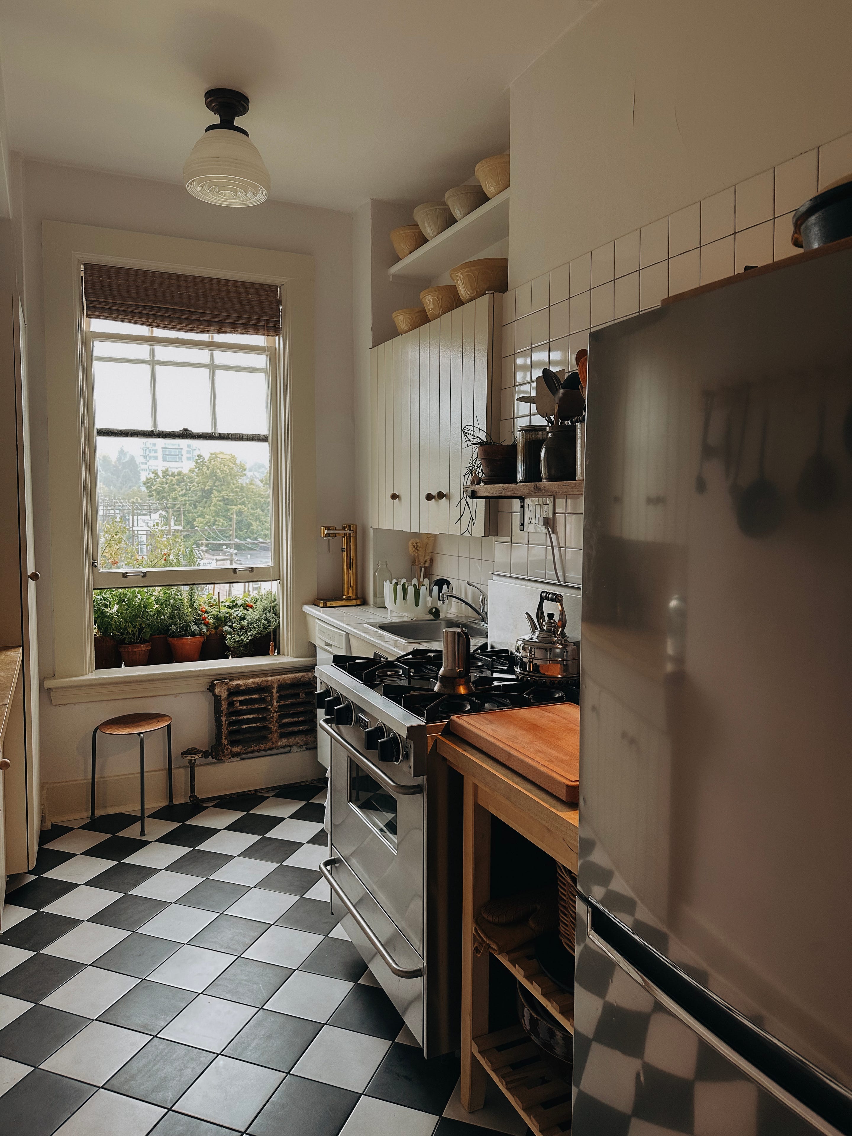 Our 1912 heritage apartment is conveniently located in the vibrant South Granville shopping district, just a stone’s throw from Downtown and Granville Island. This bright, south-facing unit boasts 1,100 square feet of charming space, complete with unique nooks and original architectural details that offers timeless European-feeling elegance. Highlights include tall French doors in the wood-paneled dining room, a second bedroom with a New York-style iron fire escape, a functioning gas operated-wood look fireplace and original inlaid wood flooring. An organic mix of antique and modern furnishings & live plants along with a curated blend of interesting art and collectibles set the scene. The well equipped kitchen has black & white checkered flooring; our wide hallway is ideal for storing gear; and the 2nd bedroom as well as our den can be used as hair & makeup areas. Metered parking and 2 loading zone spots for easy drop-off is available right next to the building on Granville Street with various paid parking lots within a 2 minute walk. The building has an elevator. Various restaurants are close by for crew lunches. We look forward to hosting you at @ The Heritage Apartment PLEASE NOTE: Video productions (involving lots of gear) need to arrange a mandatory location scouting/meet & greet.