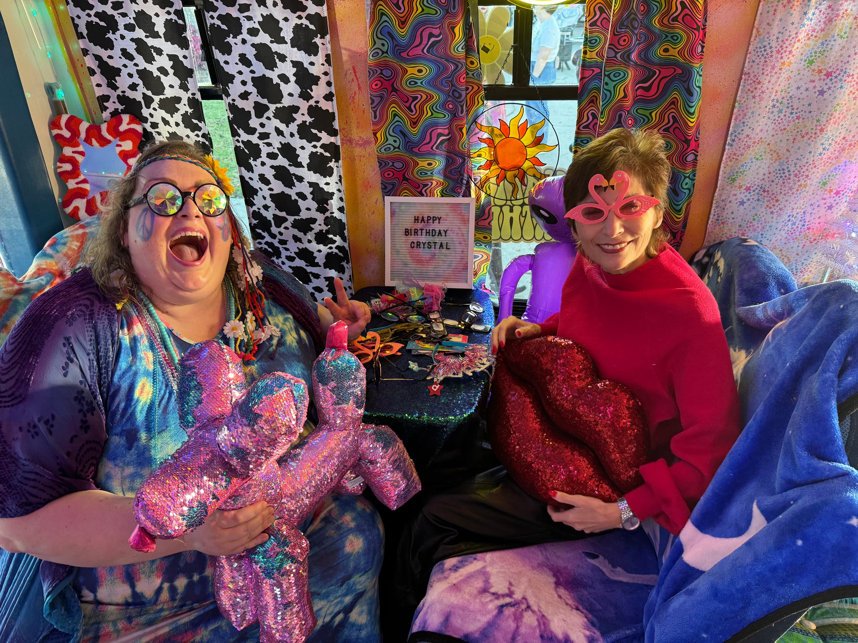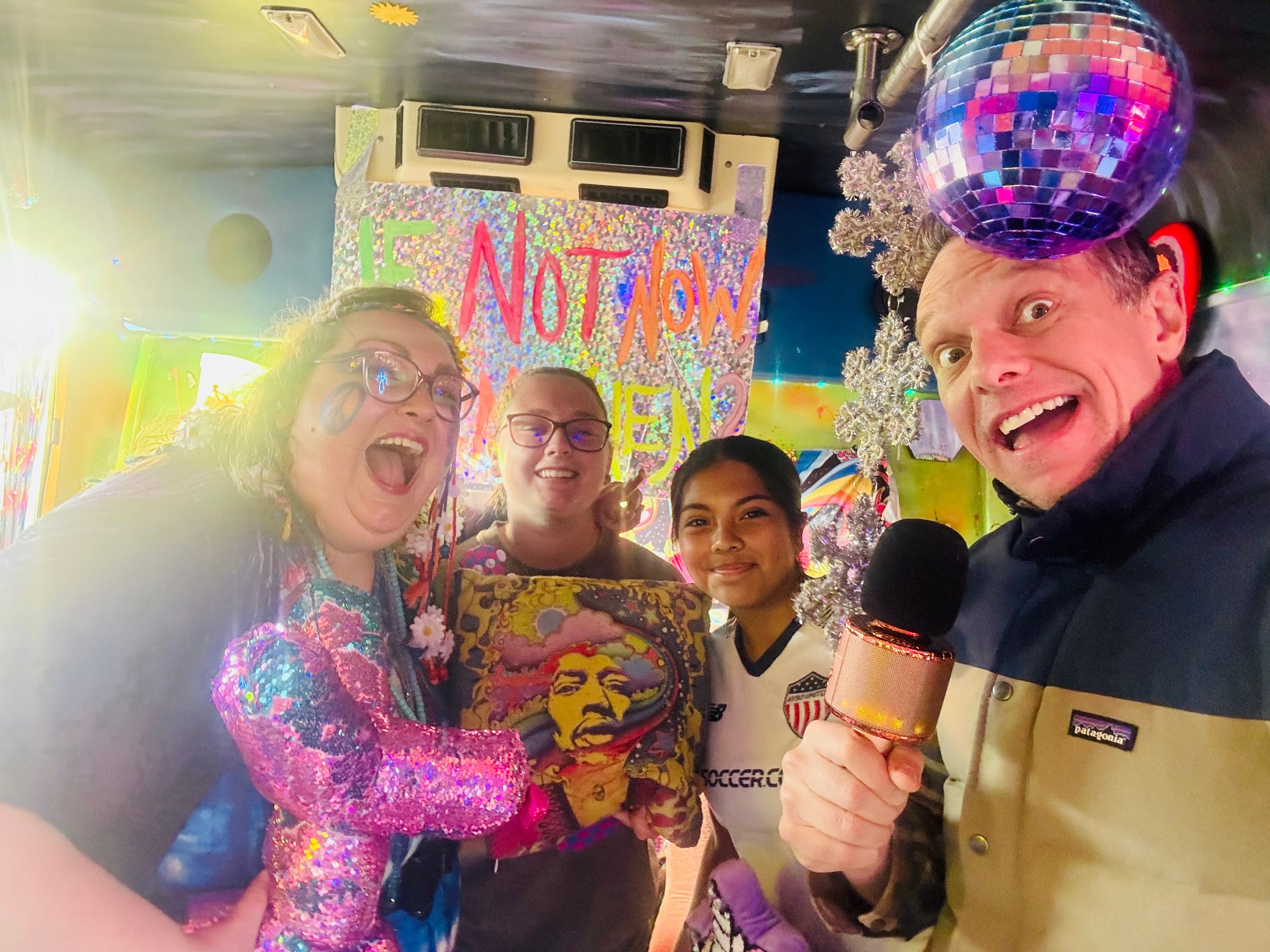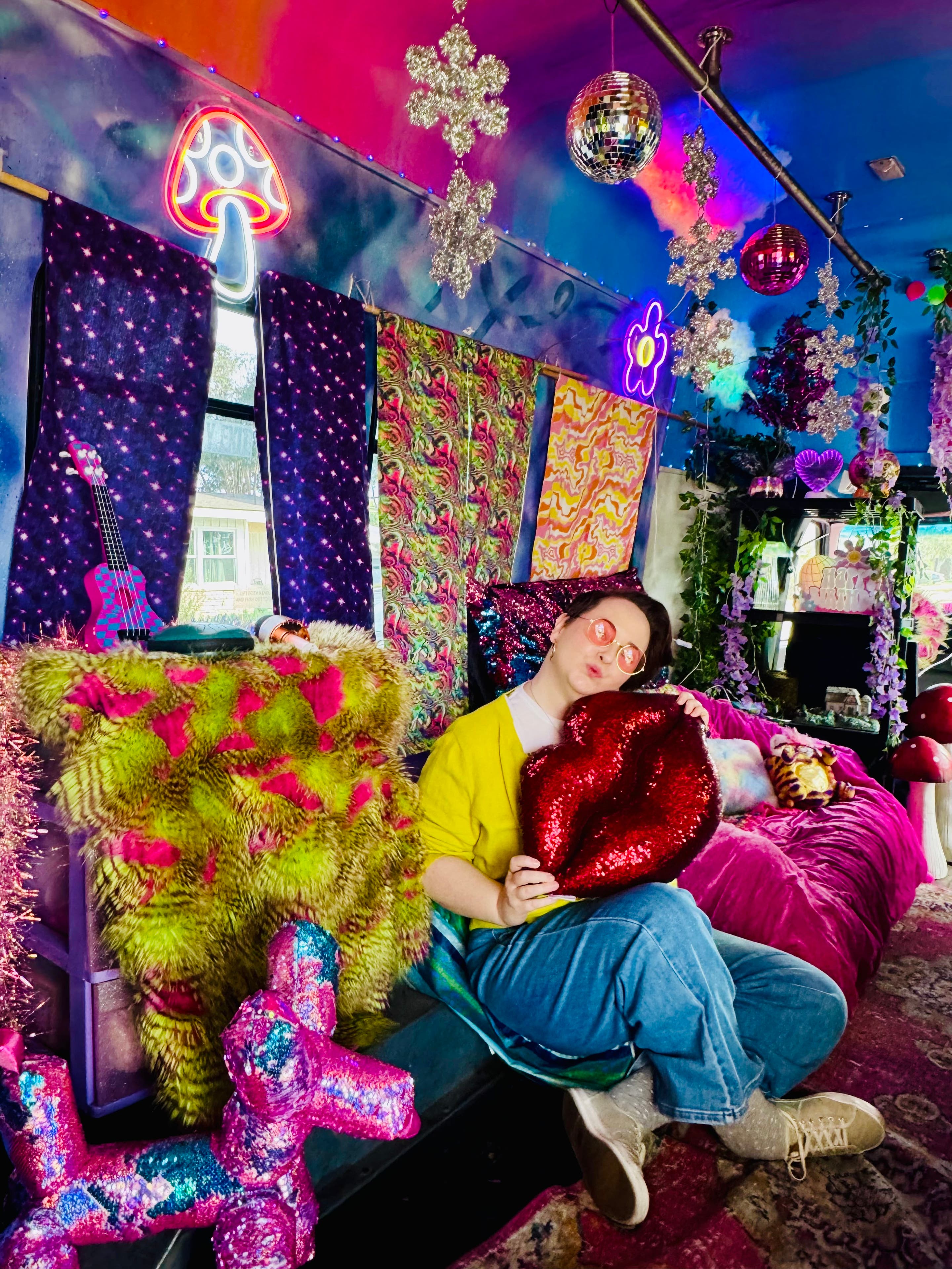 Hannah and The Dreamchaser Party Bus showed up early and ready to party! She was the most welcoming, accommodating, kind, and genuinely wonderful person one could ever meet. Not only did she provide an amazingly comfortable and fun environment for me and my guests to relax in, she made us truly feel at home in her bus and it felt like she was one of our dear friends from the start! Hannah even got us cute little party favor pens and personalized the message board in her bus to say, “Happy Birthday Crystal!” She is the most thoughtful, chillest, and sweetest person who does art workshops at the library by day and moonlights by renting out this one of a kind party bus art installation! I uploaded all the photos that I took at the party, but she made sure to get lots of photos and videos for myself and my friends throughout the party as she also offers photography services and made sure to capture a special dance party performance that one of my dearest sister friends performed on my front lawn when my own camera failed. Hannah emailed the performance to me and saved the day by capturing that special memory on video! Not only did I hire a service, I found a new friend in the most wonderful Hannah who went above and beyond to make my birthday MAGICAL! I am forever grateful to her and the Giggster platform for making this connection and birthday possible! This was the GROOVIEST birthday that I have EVER experienced!!!! Everyone who was at the party was enamored with the charming artistic atmosphere of the party bus and couldn’t stop taking silly selfies and pictures with the props, microphone, ukulele, stuffed animals, sequin pillows, blow up alien, and little musical instruments. Everyone especially loved the kaleidoscope trippy plastic glasses that were fun to try on and look at the glowing neon lights with for a SOBER psychedelic-like trip that was even child friendly LOL! It was a very comfortable space to hold group conversations in and a wonderful spot for photos! The magic 8 ball was fun to shake, but we all suspected that it was lying about the future hahahaha! All together it was the BEST time EVER!!!