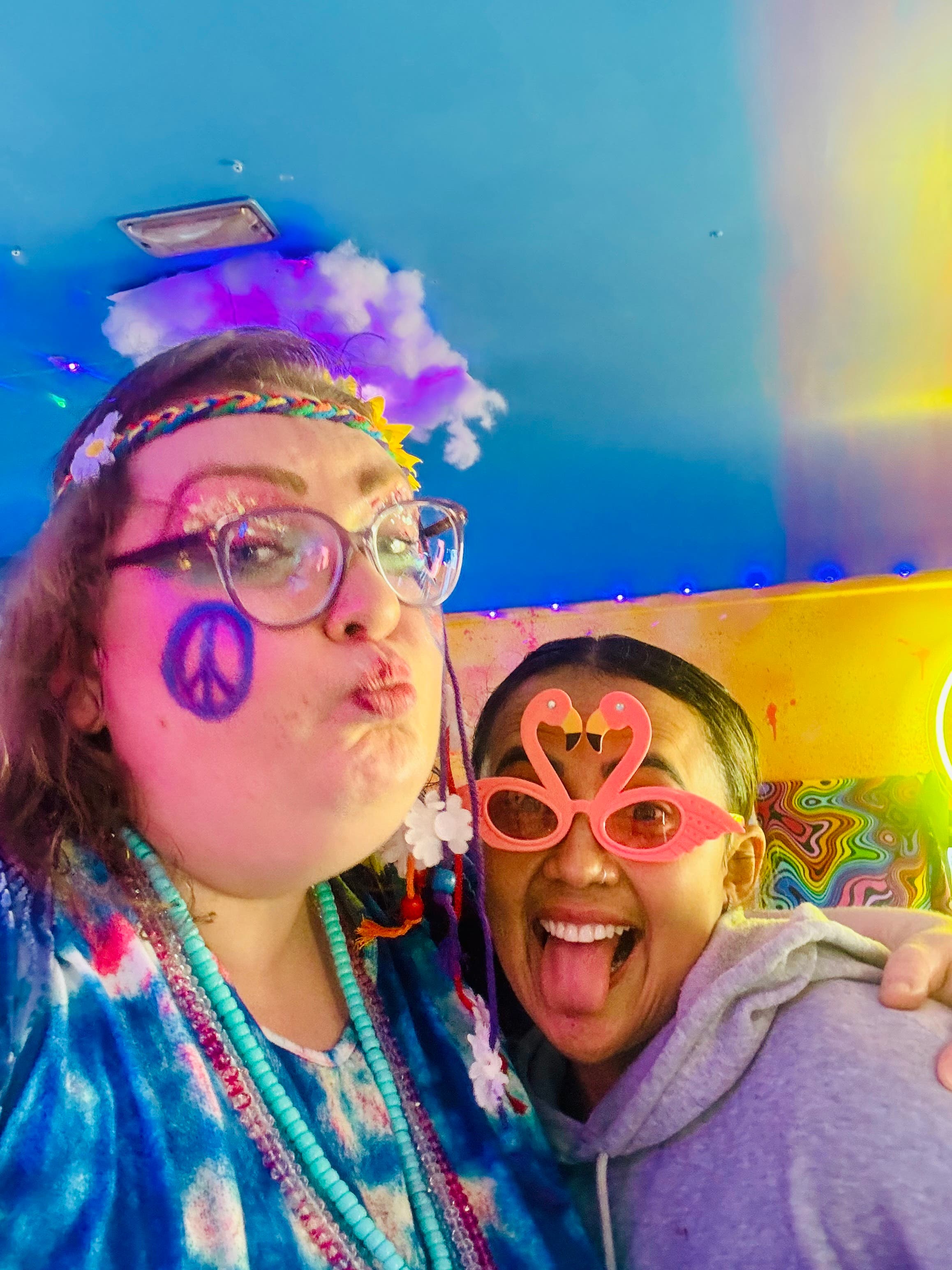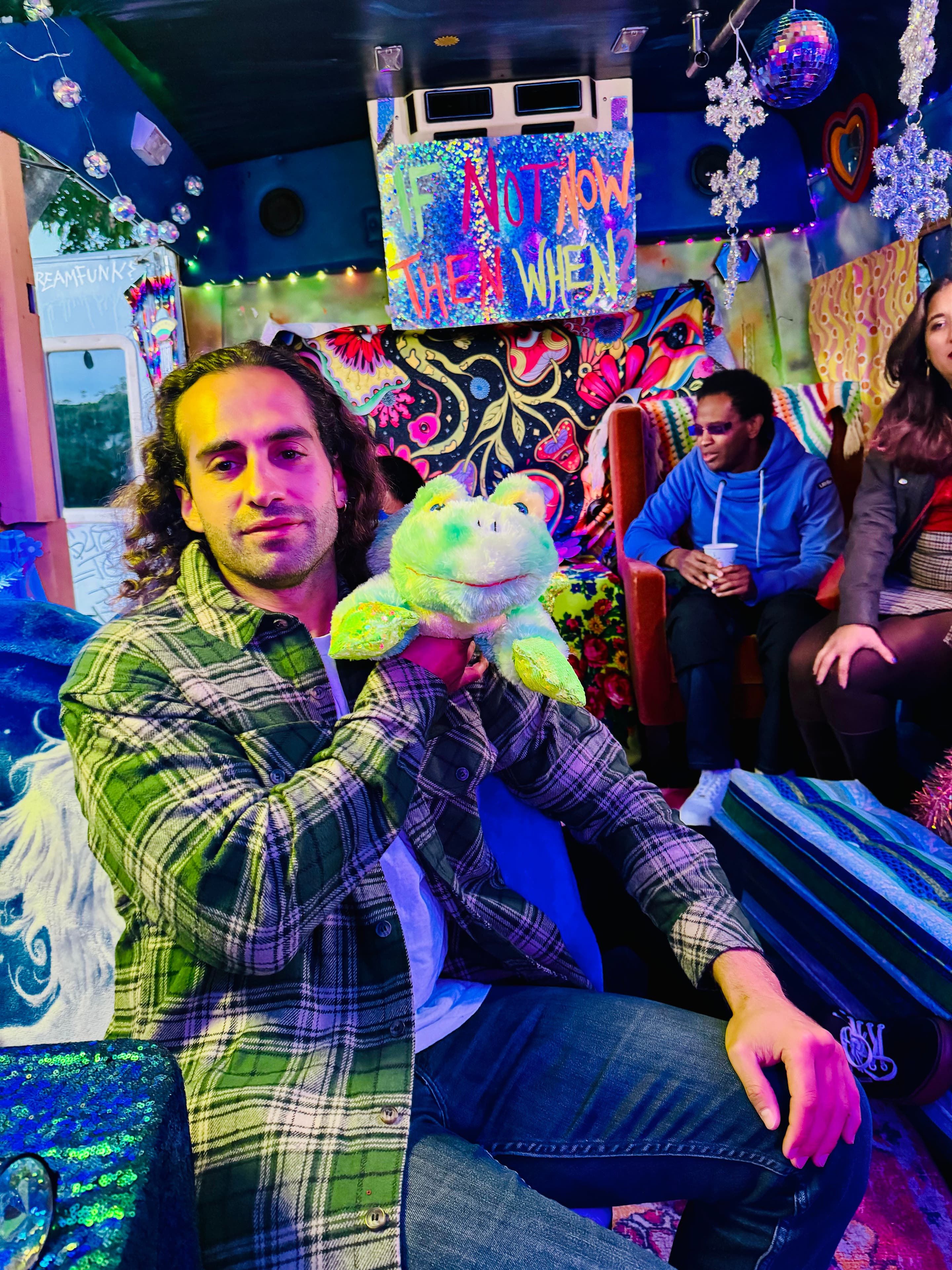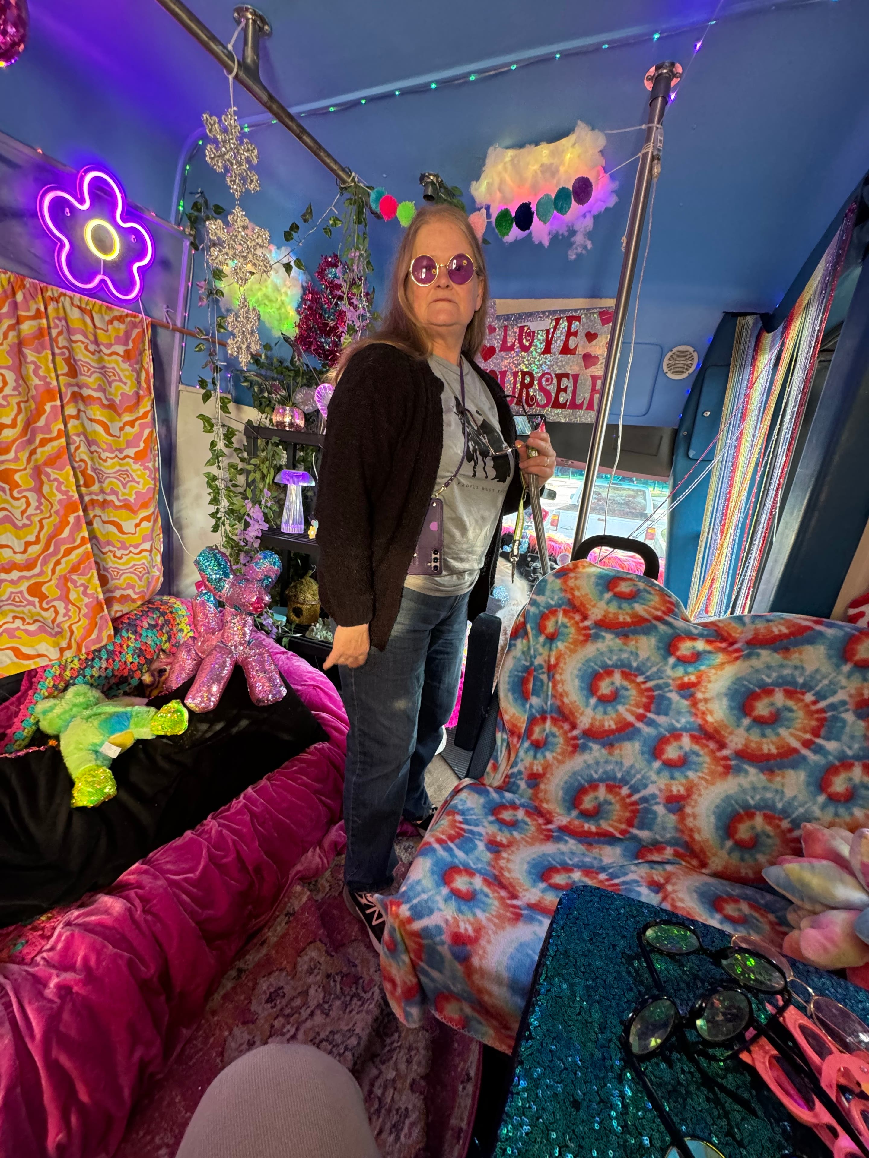 Hannah and The Dreamchaser Party Bus showed up early and ready to party! She was the most welcoming, accommodating, kind, and genuinely wonderful person one could ever meet. Not only did she provide an amazingly comfortable and fun environment for me and my guests to relax in, she made us truly feel at home in her bus and it felt like she was one of our dear friends from the start! Hannah even got us cute little party favor pens and personalized the message board in her bus to say, “Happy Birthday Crystal!” She is the most thoughtful, chillest, and sweetest person who does art workshops at the library by day and moonlights by renting out this one of a kind party bus art installation! I uploaded all the photos that I took at the party, but she made sure to get lots of photos and videos for myself and my friends throughout the party as she also offers photography services and made sure to capture a special dance party performance that one of my dearest sister friends performed on my front lawn when my own camera failed. Hannah emailed the performance to me and saved the day by capturing that special memory on video! Not only did I hire a service, I found a new friend in the most wonderful Hannah who went above and beyond to make my birthday MAGICAL! I am forever grateful to her and the Giggster platform for making this connection and birthday possible! This was the GROOVIEST birthday that I have EVER experienced!!!! Everyone who was at the party was enamored with the charming artistic atmosphere of the party bus and couldn’t stop taking silly selfies and pictures with the props, microphone, ukulele, stuffed animals, sequin pillows, blow up alien, and little musical instruments. Everyone especially loved the kaleidoscope trippy plastic glasses that were fun to try on and look at the glowing neon lights with for a SOBER psychedelic-like trip that was even child friendly LOL! It was a very comfortable space to hold group conversations in and a wonderful spot for photos! The magic 8 ball was fun to shake, but we all suspected that it was lying about the future hahahaha! All together it was the BEST time EVER!!!