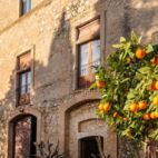 This monumental 18th century Catalan stone masia is set in the heart of the countryside, approximately 35 km from Girona. Offering 1,200 m² of interior space across three floors plus a tower, and 3,000 m² of natural outdoor grounds, the property combines historic architectural character with large scale, production friendly volumes ideal for film, television, fashion, and commercial shoots. The estate preserves its original stone façade, exposed stone walls, wooden beam ceilings, Catalan vaults, arches, fireplaces, and two imposing main entrances. Interior ceilings reach up to 7 meters in height, creating dramatic vertical space rarely found in traditional rural properties. Large southeast facing windows provide generous Mediterranean morning light, enhancing textures and depth throughout the interiors. The property includes four to five spacious interior areas suitable for filming setups, along with a terrace and natural garden areas. A distinctive tower adds architectural character and a strong visual identity for cinematic framing. The masia is surrounded by countryside landscapes, including forest, open fields, Mediterranean scrubland, and a nearby stream. Views extend toward woodland and a village in the distance, offering layered natural backdrops within walking distance of the house. The gardens are natural rather than landscaped, reinforcing the authentic rural atmosphere. Traditional stone water basins, ancient carved stone reservoirs filled with water, provide a rare and visually distinctive outdoor feature. The property is accessible by van without restriction. Truck access is possible, with final positioning to be confirmed depending on vehicle size and setup requirements. A convenient loading and unloading area is located directly in front of the house. On site parking is available for approximately 7 vehicles, with additional free public parking for more than 20 vehicles nearby. The house has two independent standard electrical installations. While there is no three phase power, generators can be brought in by production if required. The estate is located approximately 30 km from Girona Airport and 130 km from Barcelona. Filming is permitted both indoors and outdoors, including night shoots, with limited nighttime noise restrictions due to nearby neighbors.