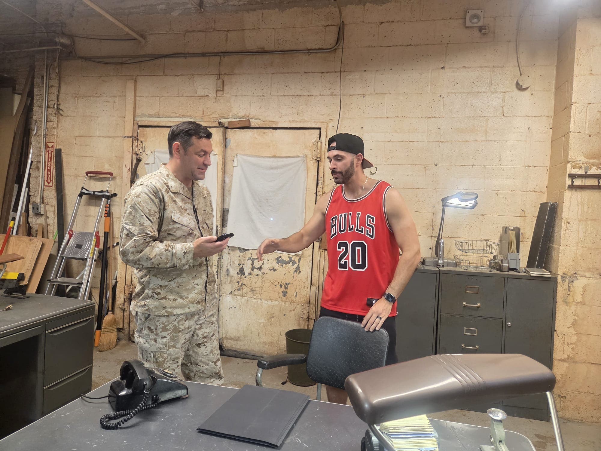 Our Retro-industrial office set is perfect for crime dramas, detective interrogations, journalist Q&As, podcast interviews, and more. Located on the first floor of our historic 1920s four-story production studio in Williamsburg, this space delivers period authenticity plus modern production conveniences. Refer house rules graphic in listing for location details and in-house prop rentals. Features: - 700 square feet set space, plus extra 600 square feet for equipment storage - Two distressed white brick walls & steel Venetian blinds over a glass-block window - Genuine 1940s–60s government-issue steel desks and leather office chairs - Gallery of framed vintage police imagery Cinematic Color Palette (60/30/10 Rule): Our space follows the Cinematic Color Palette, a design guideline that allocates 60% of the visual space to a dominant base color, 30% to a complementary secondary color, and 10% to accent hues for balanced, high-impact aesthetics. - 60% distressed white walls & natural light reflections - 30% steel-gray/forest-green furniture - 10% accent props (choose from our curated selection or bring your own) Technical & Grip - Remote-controlled overhead fixtures (dimmable) - RGB desk lamps for styling flexibility - Solid brick walls & concrete ceilings: excellent for sound control - Fast Wi-Fi and high current power outlets - In-house grip equipment available (contact us for full kit list & rates) Seamless Load-In: - Street parking plus private driveway & loading dock - Ground-level ramp to first floor (office is steps from the dock) - Large freight elevator for heavier gear - Studio manager on-site to assist with set adjustments & prop moves Building & Production Amenities: - 1920s Williamsburg landmark with original 1940s stainless-steel freight elevator - Multiple film/production spaces under one roof, visit our profile for other spaces - Featured in BBC, FOX News & Cosmopolitan shoots Explore additional shoot locations in our building, including a library, rooftop garden, optical store, workshop, and loading dock. Contact us for more information on prop rentals and multiple production spaces. Ready to anchor your next detective/crime interview series in a space that speaks history? Please share any special requirements (lighting, audio specs, additional set dressing) so we can tailor the experience to your production’s exact needs. This vintage set is available for Creative projects, Photoshoots & Film shoots.