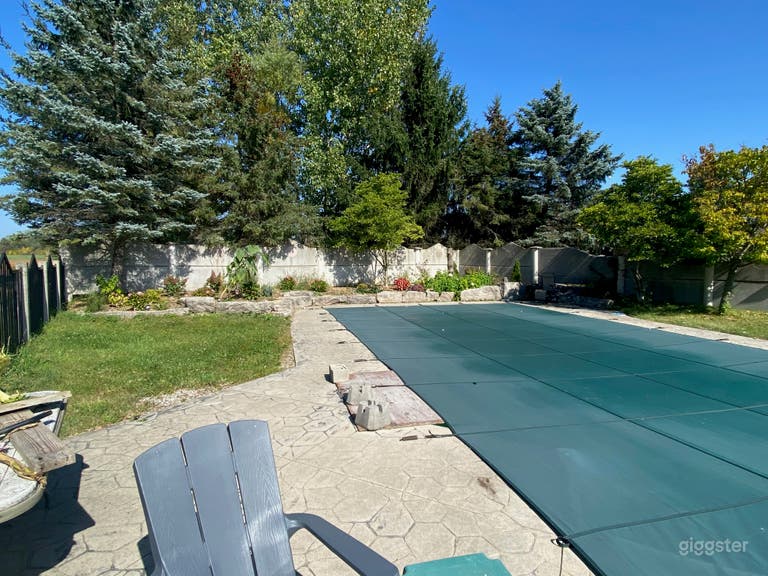 Rural setting that backs onto corn fields, colonial 100+ year old home, and outdoor location available for possible shoot. 2 large silos and workshops on the property. 3 acres, can be converted into anything. Inside is being fully renovated so currently offering outdoor shooting location. Beautiful trees around the property. Lots of availability to park your vehicles and trailers.