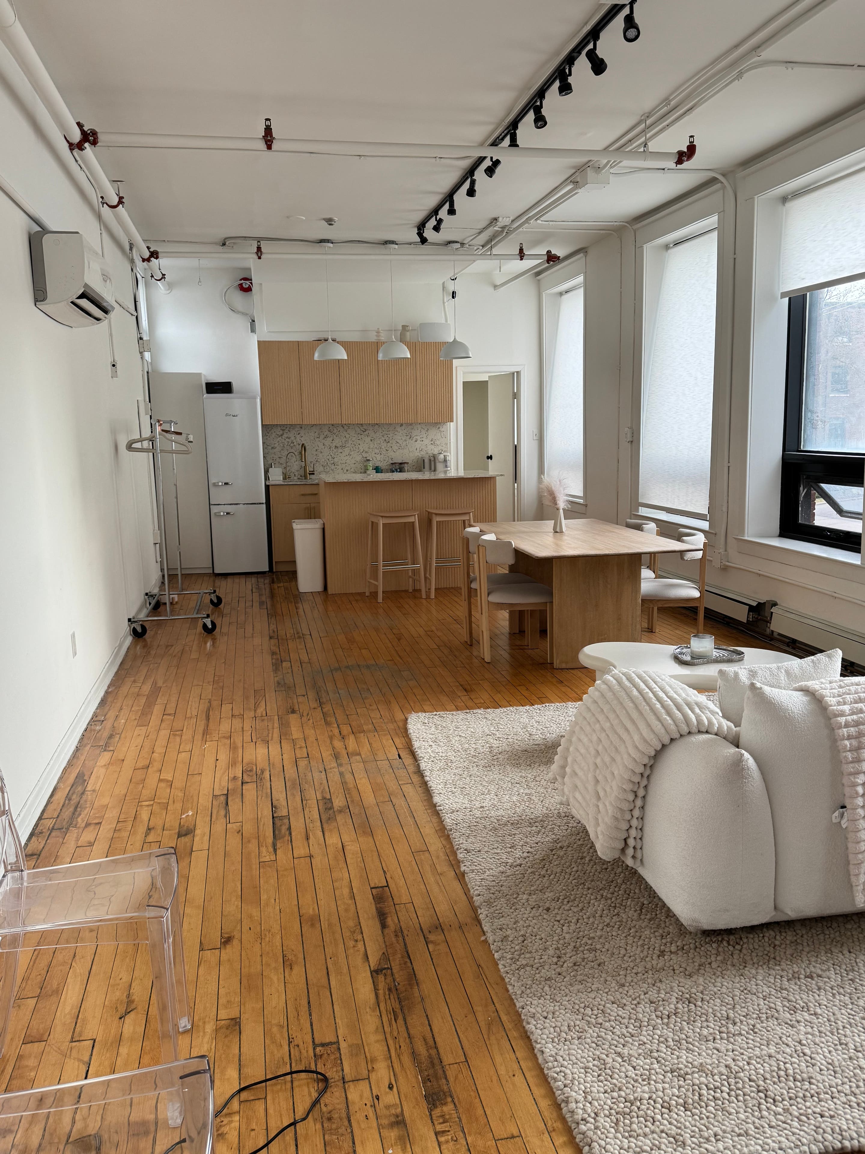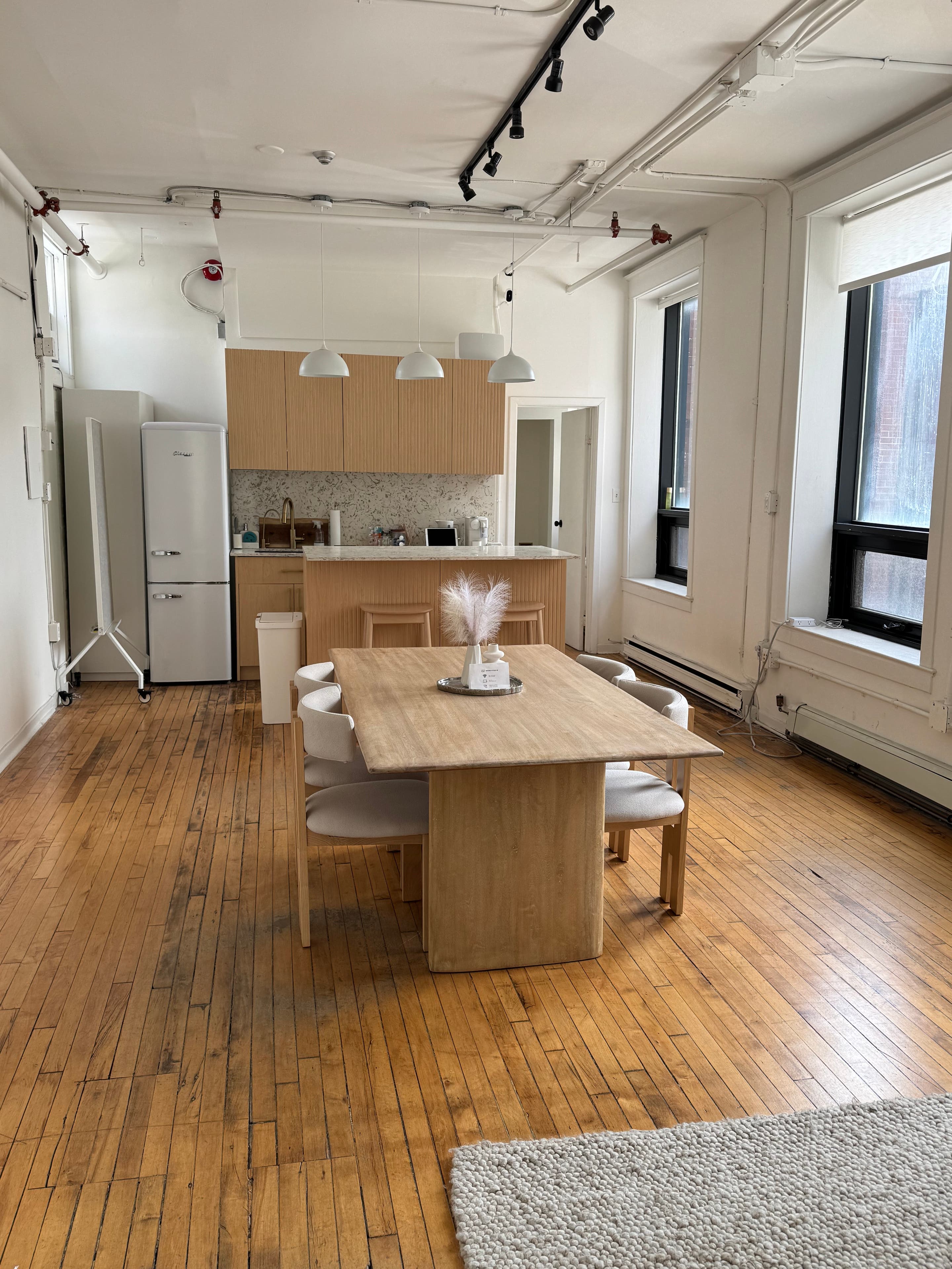 Node Studio is our bright, spacious loft-like content creation studio designed to elevate your projects. With abundant natural light and warm hardwood floors, it offers a welcoming atmosphere that blends comfort and creativity. Whether you’re shooting professional photo and video content, hosting workshops, podcasting, or planning intimate gatherings, the open, versatile layout adapts to your vision seamlessly. ~Why Choose Node?~ Curated, Flexible Space – Perfect for headshots, talking heads, product photography, and lifestyle shoots. Multi-Use Studio – Ideal for content creators, client meetings, small team workshops, and podcasting. Scandinavian Aesthetic – Sophisticated, curated furniture that can double as props or set staging. Adaptable Design – Interchangeable backdrops for portrait sessions and product shoots, and Key Lighting is Included ~Key Features to Enhance Your Project:~ Natural Light + Blackout Option – West-facing windows flood the space with light, or choose blackout for controlled lighting. Semi-Equipped Kitchen - Includes a full sized-refrigerator, microwave, sink and hot-plate for cooking and food focused projects Gear Rentals On-Site – Need extra equipment? We’ve got you covered with additional camera and lighting gear available for rent. Quiet + Professional – Excellent sound quality for podcasting and talking head videos.