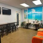 We are a Caribbean-inspired bubble tea shop located in downtown Smyrna, GA. Our location is a vibe and an experience. The decor is tropical orange, yellow, and green colors among the sky blues walls. The room can be set with tables and chairs for a seated event. It can also be staged with high-top tables for a standing-room, mingling event.