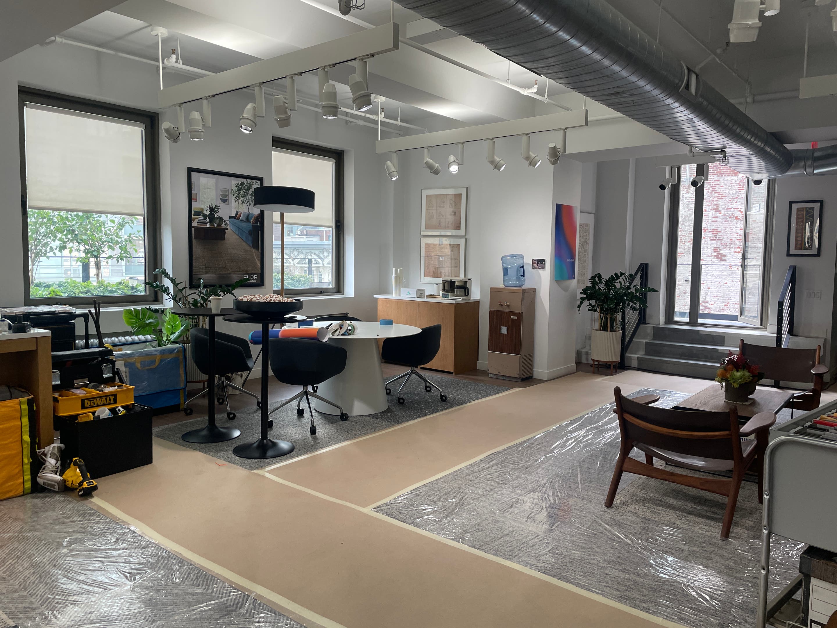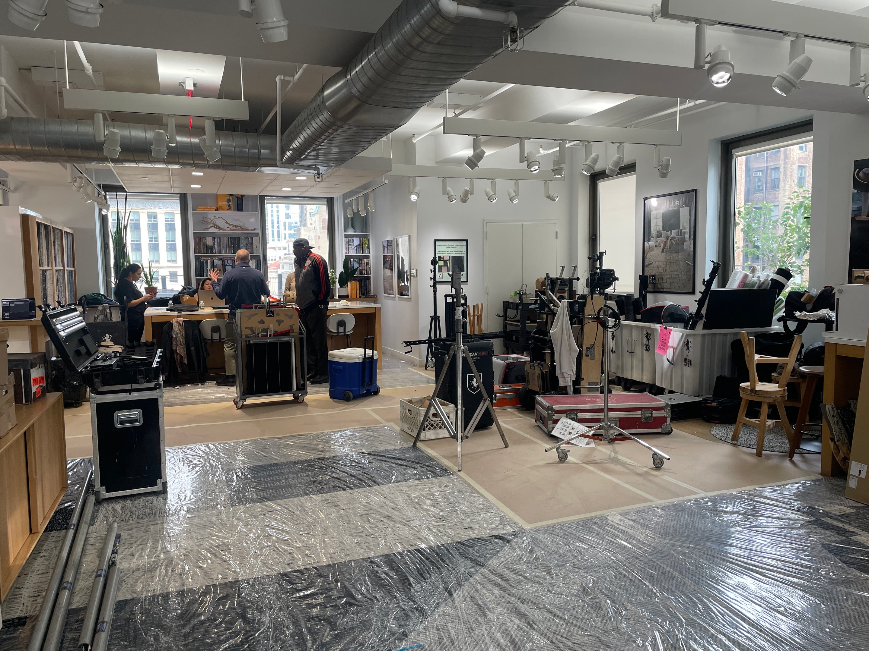 We had a great time filming in Eric’s office. The space is beautiful. We used the clean white cubicle area and transformed the conference room into a boss’s office. There was plenty of space for a wardrobe and HMU area within the showroom space, plus a gorgeous terrace that made for a perfect lunch spot. The building staff were friendly and accommodating, and the load-in through the two freight elevators was seamless. There’s commercial street parking/paid meters, easy to permit. We’d be happy to film here again.