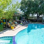 Eclectic /Artsy meets Mid-Century Modern Colorful interior with vintage backyard vibes. Palm Springs inspired back yard pool, gazebo, neon sign and pizza oven.
