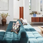 Gowanus 3 Story Former Factory building with modern loft-like ground floor, 3 bedrooms on 2nd floor and large deck off 2 upstairs bedrooms Sunken Living Room w/ baby grand piano and sectional Tufty time couch Open kitchen with Wolf range and extra large marble island Sculptural lighting fixtures Den with patterned rug White brick walls, white dry wall Rolling black barn door that reveals or covers bar area
