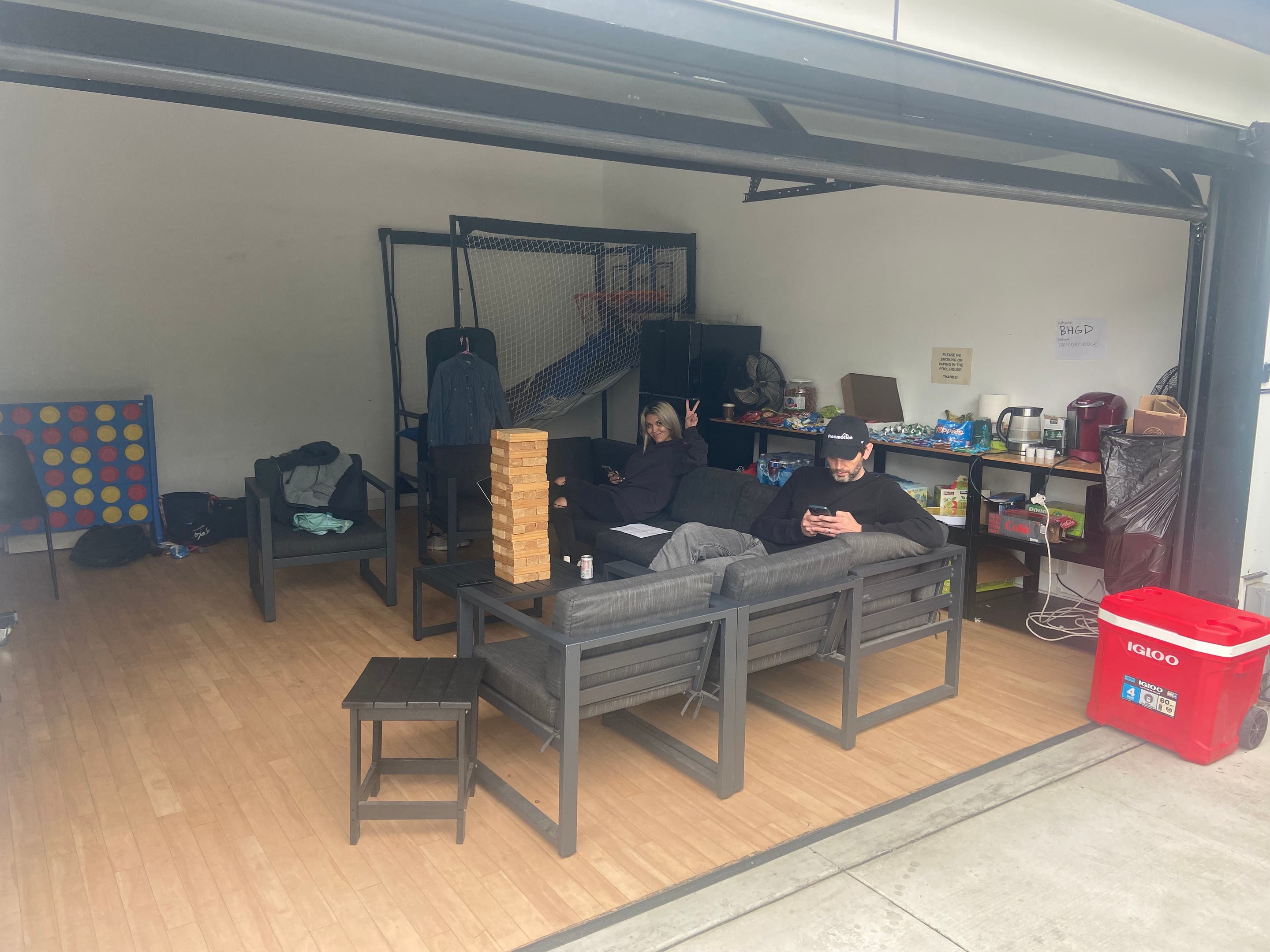 The home was as beautiful as the pictures. We had a great time. So many places to sit. Two beautiful bathrooms and the back house saved us from the he