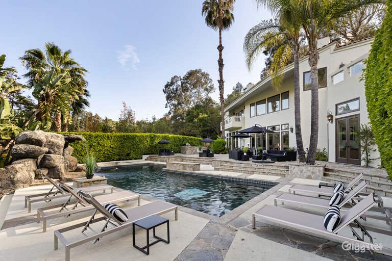 Cool, crisp, and camera-ready from court to cabana This stylish hillside estate offers a playful mix of bold lines, resort vibes, and functional luxury. Featuring a tennis court, full gym, heated pool with built-in spa, and a vibrant red-felt billiards table, it’s an energetic, camera-friendly setting ideal for lifestyle shoots, fitness content, and influencer productions. Crisp white interiors, oversized marble bathrooms, and open-plan living areas offer sleek, neutral palettes perfect for gear setups and flexible lighting. Unique details like a two-story curved staircase, an enclosed sunroom with pitched glass ceiling, and an in-home sauna add visual richness to any narrative. From day-to-night transitions to multi-scene filming, this location is production gold. Pricing Pricing is based on the total number of cast and crew, as well as the areas you plan to use during production or events. Rates listed are for a single area only, and additional areas will need to be discussed and agreed upon. Let’s jump on a call ASAP to discuss your needs—we strive to be as budget-friendly as possible! Recommended For Fitness and wellness campaigns Reality TV or influencer content Poolside fashion shoots Branded content with leisure & luxury themes Game night or social lifestyle commercials Group scene filming (open flow layout) High-end tech product shoots Production-Friendly Features Large tennis court with adjacent hillside backdrop Pool and hot tub surrounded by palm trees and uplighting Billiards lounge with red felt table and ambient bar lighting Glass-wrapped sunroom perfect for interviews or product shots Open kitchen with waterfall island and ample prep space Full gym with mirrors and resistance equipment Neutral interior palette with hardwood and tile mix Large en-suite bathrooms with luxury marble finishes Private driveway and garage for load-in/load-out Minimal décor for easy redressing or set builds Top 10 Standout Elements Resort-style pool area with elevated hot tub Red felt pool table in lounge-ready game room Full-size tennis court with canyon views Oversized marble bathrooms ideal for glam shots Glass-wrapped sunroom with pitched ceiling Two-story curved staircase as visual focal point Spacious walk-in closet for wardrobe staging Sleek chef’s kitchen with high ceilings Bold use of black and white in modern living spaces Outdoor fire lounge surrounded by lush greenery Tags hillside estate modern interiors tennis court pool with spa glass sunroom curved staircase open concept living white marble bathroom home gym billiards table minimalist palette contemporary architecture influencer-ready fitness lifestyle outdoor fire lounge fashion shoot location bright natural light sleek black-and-white decor sauna spacious driveway