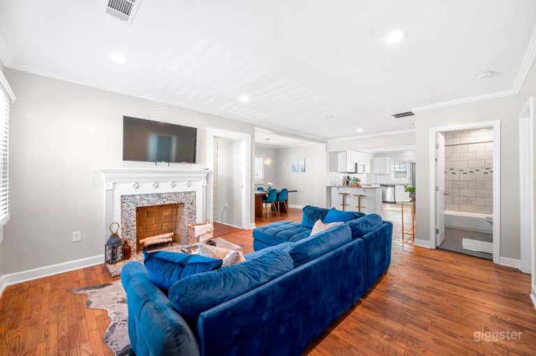 IMPORTANT INFO: For filming permits at this property please contact: The Economic Development Office for the City of East Point. Erin Rogers at (404) 270-7059 or erodgers@eastpointcity.org for more information. ***Permits applications shall be submitted at least 5 business days ahead of the production.*** ___________ Tucked away behind a 1940s bungalow home, this tiny home offers a custom-designed studio space in an area that’s hard to beat. At 590 sq. feet, the modern industrial design features an open floor plan that gets plenty of natural light, perfect for small photoshoots, video productions, and content creation. THE SPACE // The exposed brick and epoxy concrete floors create the feeling of a loft in the city, while a manicured lawn brings you the peaceful vibe of the suburbs. While the space itself has many unique touches, the kitchen is hard to turn your eye from and creates a beautiful backdrop for cooking demonstrations or kitchen scenes. LOCATION // Its central location in East Point makes it ideal for your travel and production needs. Grab B-roll shots of downtown East Point and the MARTA, less than a mile down the road. Take a tour of Tyler Perry Studios just 10 minutes away, or pick up your team from the airport in less than 15 minutes. And if you need a break for some creative inspiration, downtown Atlanta is just a short 15-minute drive and a great area to explore and refresh your creative palette. PARKING // If parking is on your list of concerns, no need to stress over transportation woes. The space features a 60-foot parking pad and extended driveway, as well as street parking throughout the neighborhood. Large vehicles are encouraged to park on the main street, however, experienced drivers can navigate their way into the back side of the house with careful maneuvering. While a number of film projects have happened around the area (check out the small park just around the corner!), please keep in mind that this is a residential community, so being respectful of the neighbors and guests in the main house is greatly appreciated!