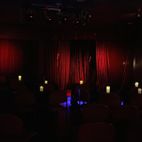New York-style comedy club. It comprises a hit and miss brickwork bar, stage with red / black velvet curtains, and a completely light locked environment. All room lighting runs of wireless app, and the stage lighting on a DMX panel. It feels like a speak easy upon entry.