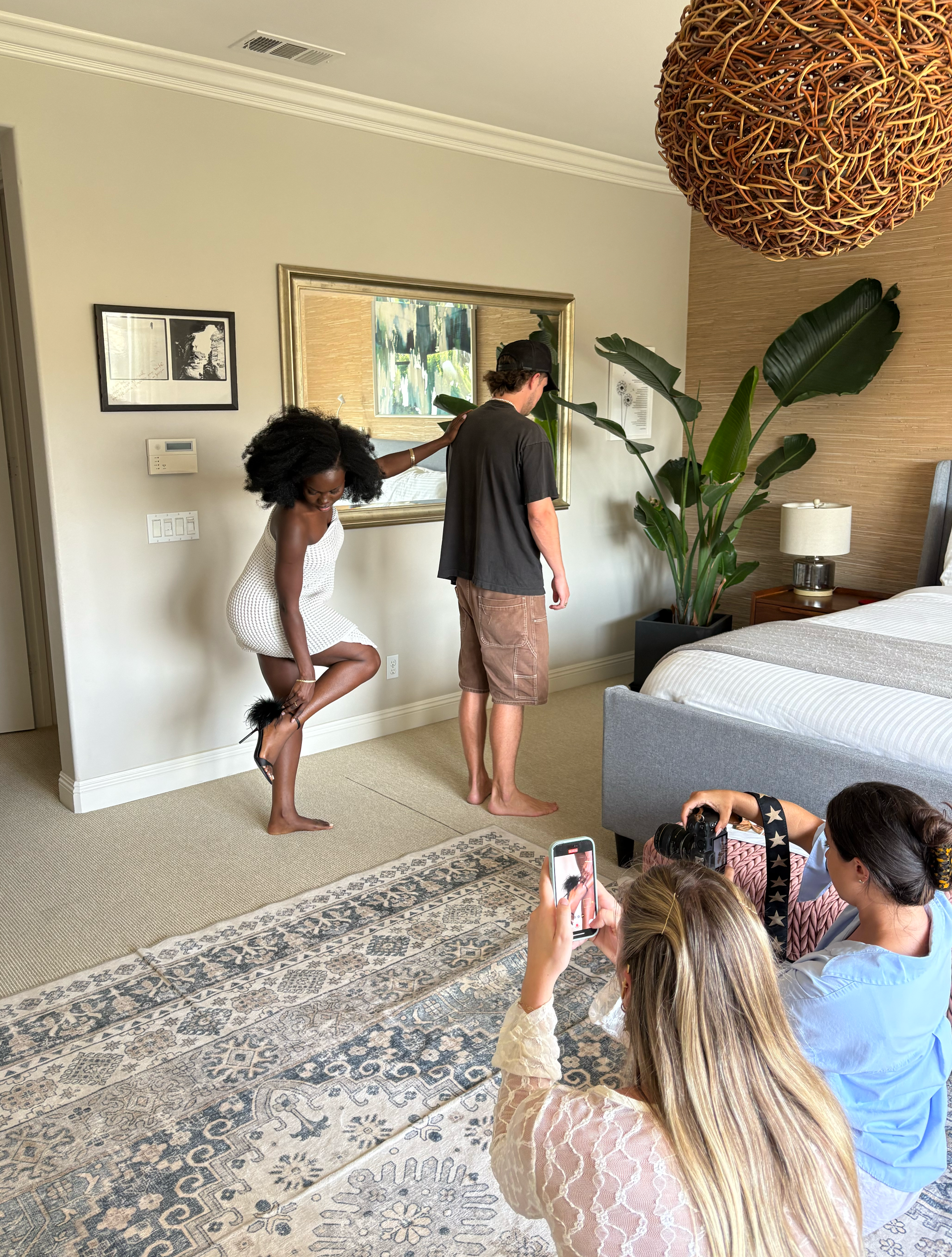 We had a great experience! We were looking for an upgraded kitchen and cozy bedroom + bathroom environment for a product launch shoot and their space was perfect. There was plenty of natural light upstairs in the bedroom and bathroom and their design aesthetic fit well with the concept we had in mind. Their kitchen was massive with a giant island and felt very natural and lived-in...perfect for our concept. While we shot primarily in the kitchen and bedroom/bathroom, the rest of the house was very well designed and curated with art and modern feeling furnishings. We only used the back patio sparingly for a few shots, but their patio and pool + lounge area would be great for an outdoor shoot. There was tons of lush, mature landscaping and everything felt intentional. Beyond comments on the aesthetic of the house, Zoe and Jussi were super friendly and great hosts. They communicated quickly and clearly throughout the entire process. They greeted us right at our scheduled time and were very efficient in their onboarding. They gave us a quick tour of the space and asked if we needed anything and then left us to handle the shoot. Quick, easy, and crystal clear. Highly recommended!