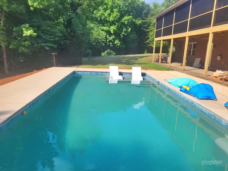 This Peaceful Lakeside oasis designed for both recreation and production. The spa-style pool area features a fire pit, comfy deck seating, and sweeping views of the lake—especially stunning at sunset. Step down to the private dock with direct lake access and a two-level boathouse equipped with a smart TV, deep lounge seating, and Wi-Fi throughout the pool and dock area. It’s the perfect spot for a photo shoot, a video production, or a laid-back gathering with a view. This lakeside pool is available for Recreation, Photoshoots and Filmshoots.