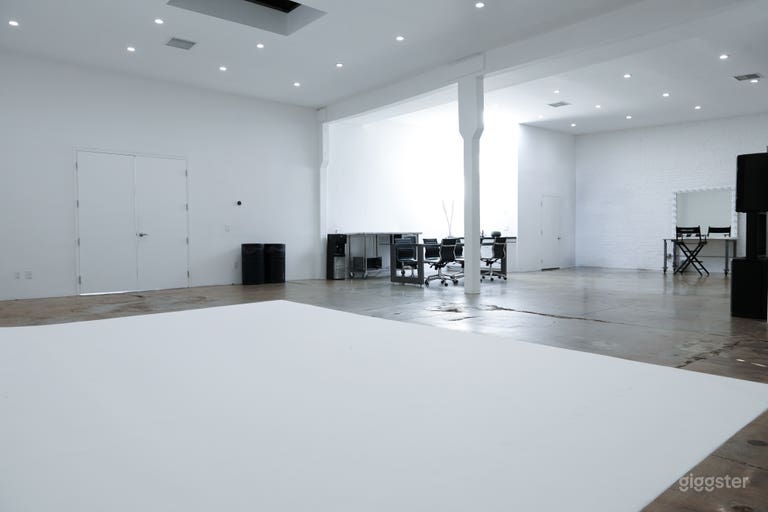 *NOTE THAT THE PUBLISHED RATE ON THE LISTING IS FOR PHOTOSHOOTS ONLY. FOR FILMING, THE RENTAL FEE IS $320 PER HOUR MINIMUM OF 10 HOURS. THE SANITATION FEE IS $300. Located just outside the Arts District in Downtown Los Angeles, our versatile 4,000+ sq. ft. space is ideal for photo shoots, film productions, and creative events. Featuring polished concrete floors, two skylights, and a professional cyc wall, Stage 1 provides the perfect backdrop for your project. The stage also includes a production loft with an elevated view of the entire space, offering a unique perspective for your crew. The space is equipped with 400 amps of power and Bose surround sound speakers to ensure your production runs smoothly. For additional flexibility, we offer a small soundstage located backstage complete with a grid, TV, and private bathroom. This space can double as a dedicated hair & makeup room which comes with a rolling glamour station, lighting, and clothing racks for wardrobe changes. Our custom-designed VIP room is perfect for your talent or team to relax between takes, featuring a small fridge, a TV, and a private bathroom with a shower. Clients will also appreciate the convenience of on-site parking and the option to relax on the outside patio. Included: - 2x Steel Rolling Tables - 1x Mini Fridge - 1x Microwave - 2x Z-Racks - 1x Steamer - 1x Speaker - 1x Seating Area - 1x Table - 6x Office Chairs - 1x Iron - 1x Ironing Board - 1x Rolling Vanity Table - 2x Tall Director's Chairs - 1x Coffee Station (including a Keurig machine, K-Cups, Creamer, Sugar, and Stirrers) - Stage Manager - Power