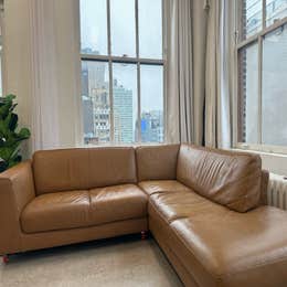 Free CYC wall 12ft X 15ft Super bright, spacious Photo & Video Studio in the heart of Manhattan's Garment District with gorgeous views of Manhattan. This would be an ideal space and location for any photo and video production, As its on 8th Ave, between 37th & 38th street. ( We have total of 8 different spaces in the same building ) - All the equipment we have is for you to use for FREE. - Ceiling = 12ft - Seamless paper = 15 different colors. - If you wish to use any paper background it's $30 per 9 ft pull We have TONS of direct sunlight that comes through the 5 oversized East facing windows and TONS of light pouring in from 2 oversize south facing windows. AMENITIES 2 freight elevators 3 passenger elevators 24hrs Concierge and security 2 private restrooms dedicated to our studios located in the same hallway A C E 1 2 3 N Q R W 7 S All trains coming into Penn Station and buses to Port Authority LIGHTS 3 x Flashpoint Rapid 600 II HSS Monolight w/Built-In R2 1 x Nanlite FS 300 Bi-color LED continuous light 1 x Universal Remote trigger LIGHT MODIFIERS 1 x Glow Profond Quick-Open 47.2" Deep Parabolic Softbox 1 x Glow Profond Quick-Open 35.4" Deep Parabolic Softbox 1 x Glow EZ Lock 12x56" Quick Strip Softbox With Bowens Mount 1 x 10"Reflector bowl 2 x V-flats STANDS 1 x Medium roller with arm 3 x Rolling stand 2 X Heavy Duty Impact background stands 1 x Impact HD crossbar STYLIST & MAKE-UP UTILITIES 10 x Hangers 1 x Garment Rack 1 x Steamer 1 x Professional Hollywood Vanity Make up Station MISCELLANEOUS 1 x Brown leather couch with 2 matching chairs 1 x Coffee table 2 x Directors chair 2 x Stool on wheels 1 x Capture station 1 x Apple box 1 x Portable JBL speaker with Bluetooth and Aux 4 x Medium A clamps 1 x Heavy duty extension cords 1 x Rolls of tape 1 x Paper blade ★★Please note: A night-rate surcharge of $50/hr applies to all bookings extending past 8:00 PM, in addition to the standard hourly rate.★★ ★★ Our Studio manager is on site to make sure you have everything you need to have a great shoot.★★ ★ Please leave the studio the way you found it and that way we do not have to charge you a cleaning fees. ★★★★★ ❤ ✽ HELP US HELP YOU GET A CLEAN STUDIO ✽ ❤ ★★★★★ Photo Shoots, Portrait Photo shoot, Podcast, Film Shoot, Product Shoot, Fitness Video, Music Video, Web Series Shoot, Workout Video, Filming, Video Shoot, Casting, Apparel Shoot, Clothing Shoot, Commercial Photo shoot, Fashion Shoot, Head Shot, Photo Shoot, Promotional Video, Product Shoot, Promotional Photo shoot, Workshop, Collaboration, Workshop Dance Shoot, Documentary Shoot, Production, Kickstarter Video, Fashion photography studio, beauty photography Studio