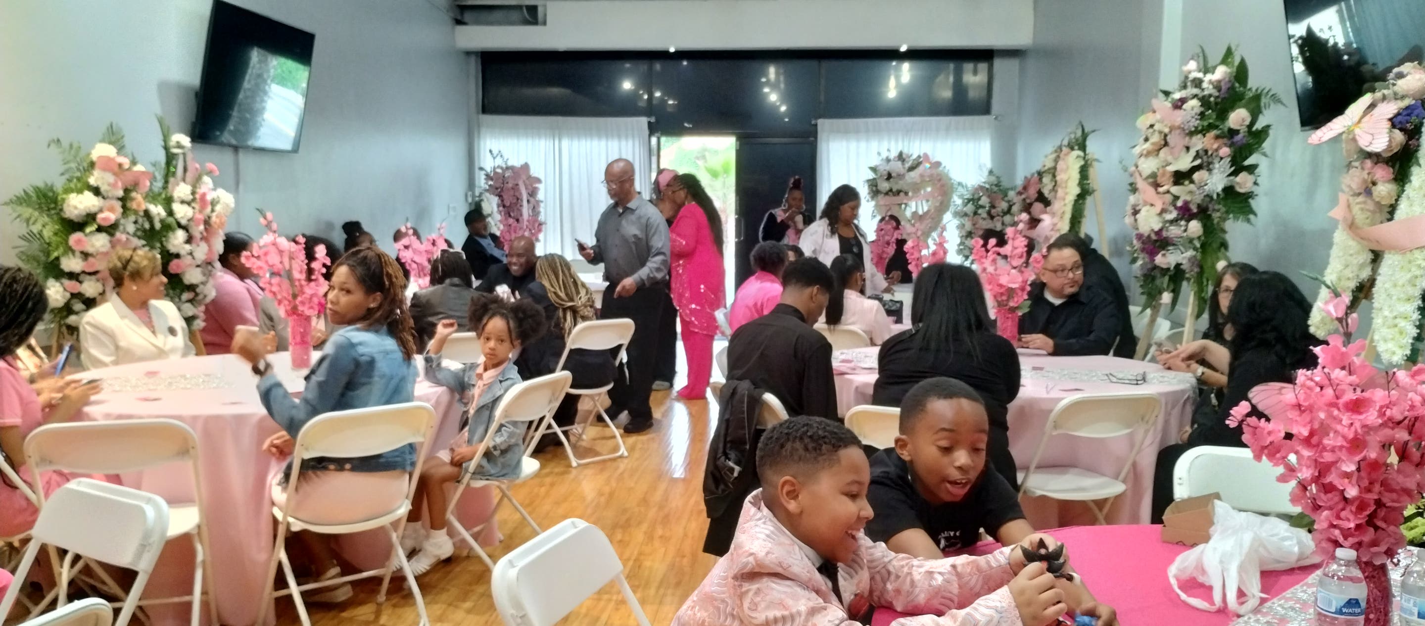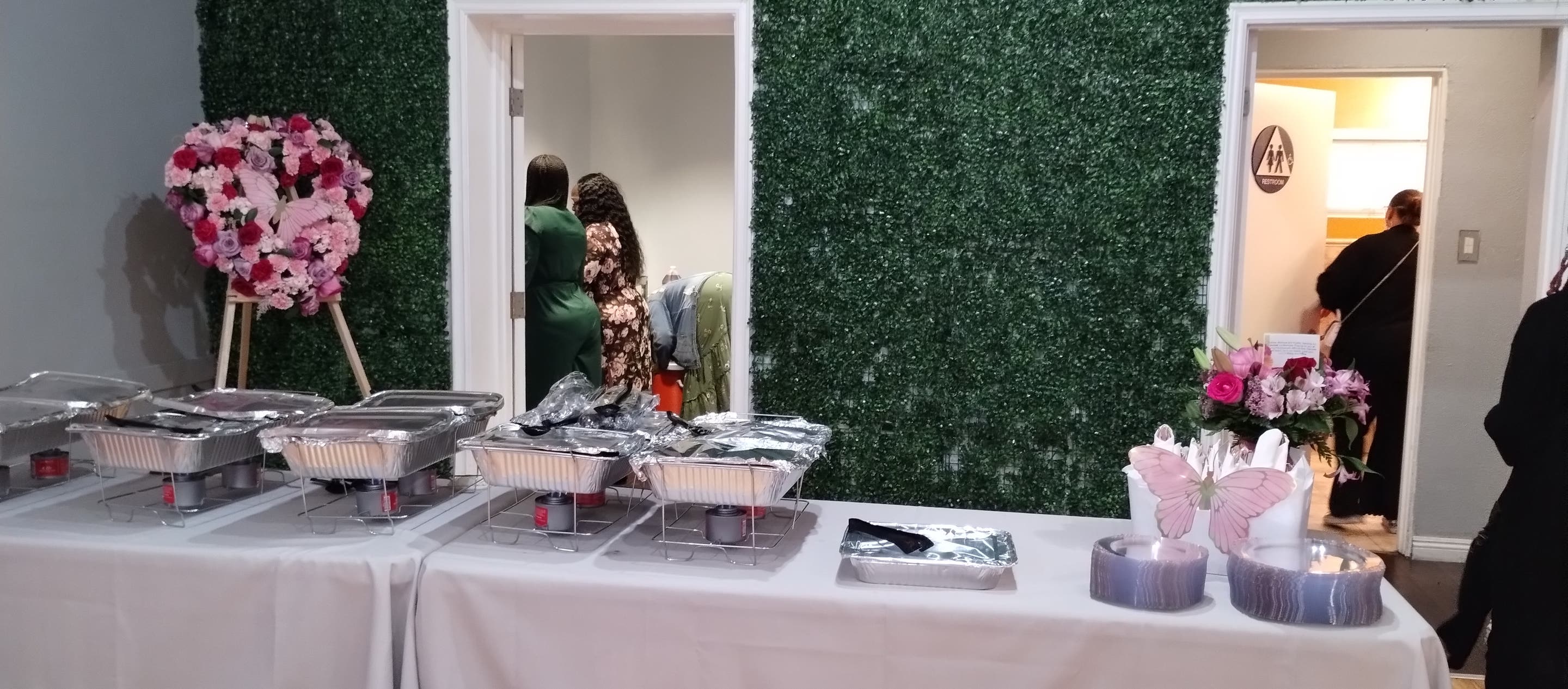 Our minimum package is 4 hours. All rentals come with 1 hour set up time at no cost to you. After 1 hour the fees are added to your total hours. 50% non refundable deposit to hold date and time this will go to pay part of your balance owed. Also Rental comes with 6-8 table rounds or 6 6ft rectangular tables, 50-75 chairs, bluetooth speaker, central ac and heat. We allow decor, food, Dj, alcohol with a bartender and catering in the venue. We ask that you use chafing dishes to keep the food warm for serving. ( At this time we do not have a kitchen but we have a room that can be used for food prep and serving). The only limitation is we do not allow taco man to cook inside . Deposit is non refundable but it is added to your final balance. There is a parking lot on the side of the unit, in the back and ample amount of street parking. We do have catering and decor services available and it comes with a consultation first to make sure we can design the perfect menu and decorations for you and your guest. *Capacity 85-100 persons Thank you.