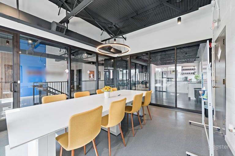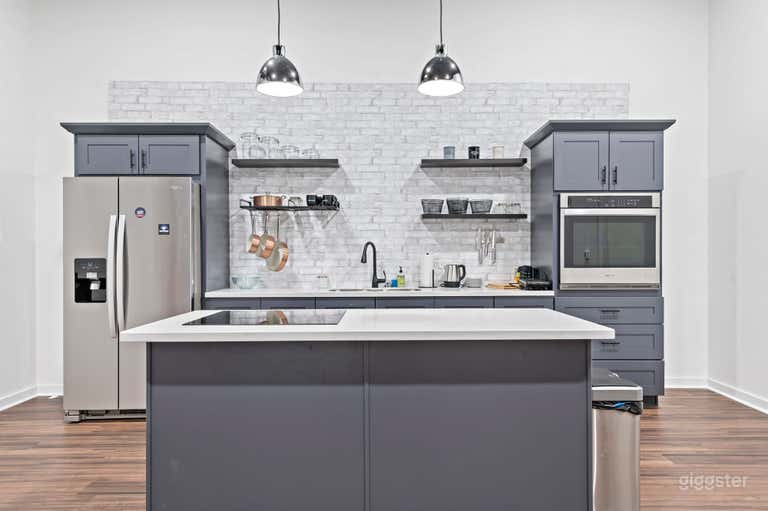 The Flex studio is a raw 20'W x 30'D x 14'H space where we build everything from podcast sets to bedrooms and med spas. Our pre-built stage flats and inventory of decor options make building your next set quick and easy. Most sets can be built with a few days notice. This set was built with podcasts in mind. There are 2 RGB Strips that can be changed to fit your brand. You can also hook up a laptop to the TV for images or videos during your podcast. This space is not limited to podcasts, it can also be used for sit-down interviews or photography! The space is 12x12 and is semi-customizable. We have different chair and table options to choose from. We also have sound curtains to close off the podcast set to help with acoustics and outside noises.