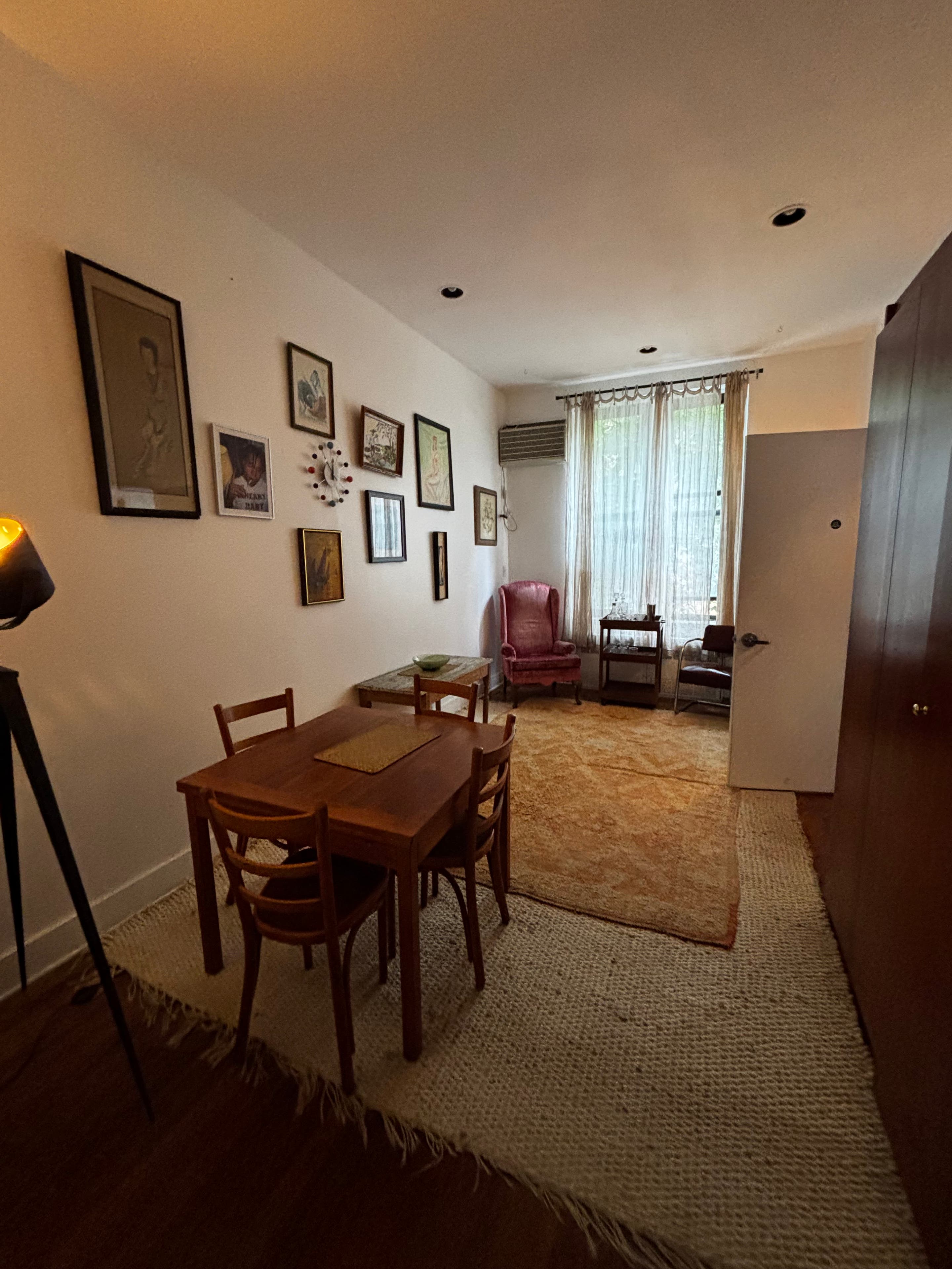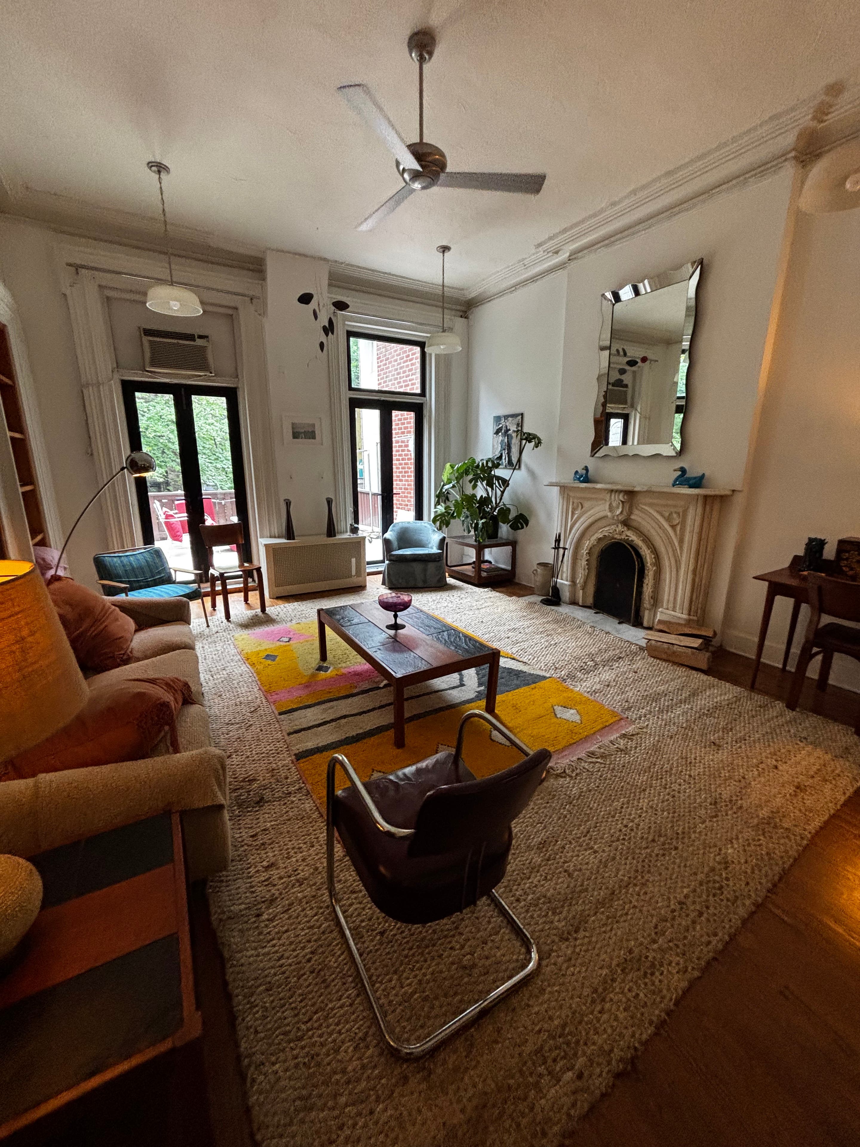 VIDEO OF ENTIRE SPACE: https://vimeo.com/802110543 Upscale, chic, and bohemian full floor of quiet Brownstone building available for photo and film shoots as well as small events! Our place is IDEAL for photo shoots, content creation, PR/product launches, and other creative endeavors. We’ve hosted several upscale magazines, films, and photographers for projects and hope you will join us! PHOTO/VIDEO SHOOTS: Our mid-century modern furnished apartment is a turn-key photo and video studio with great natural light. We can supply everything you need from catering to equipment. Started by a fashion stylist and photographer with years of experience in fashion and celebrities (Vogue, i-D, The Face, etc.) we wanted to create an upscale and chic environment to inspire creatives (stylists, photographers, directors, etc.) to fulfill their vision. The space can be used with furnishings or bare walls/seamless to fit your brief! OTHER EVENTS: Our team can work with you for anything you might need for events from PR/product launches to small gatherings of friends. Our warm and inviting space is lovely for dinners, meetings, small parties, engagement parties, bridal showers, baby showers, or even just cocktail hour. OUTDOOR SPACE: We have a lovely patio space included in the rental. With 250 sq feet of a hardwood patio, shoots and events can easily spill over to the outside space. Attached by stairs is a garden space of 600 sq feet that can be included in the rental for an additional fee. The garden in the spring and summer is an oasis of tranquility on a tree-lined block in Midtown that feels less like Manhattan and more like Brooklyn. FULL SERVICE: We can supply lighting and equipment for photo shoots through an independent contractor who is great and often less expensive than larger rental houses. We can supply catering or a stocked fridge to meet your needs. We also have a full collection of vintage clothing that can be rented for styling purposes. Our many years of experience in fashion will help us be two steps ahead of everything you might need for your shoot/event. LOCATION: We are located on a very quiet residential street in the Murray Hill area (east midtown Manhattan). Our location is easy to stock up on what you need - within a block of Trader Joe's, Fairway, Target, and Bed Bath and Beyond. There are lots of local cafes we recommend if needed for catering. ACCESS: Loading in and out is easy - the only stairs are the outside brownstone stairs. Once up those, you’re in! FEATURES OF OUR BROWNSTONE: High ceilings and original moldings Clothing steamer, hangers and clothing racks Seamless paper and stand Wifi Bluetooth speaker and record player Marble-detailed fireplace mantle Electric crackling fireplace HDMI enabled projector Printer Photobook library High end mid-century modern furnishings and use of any objects/books Coffee maker, oven, hot plates Air-conditioning Patio with vintage patio furniture Consider experiencing this authentic New York brownstone aesthetic for your next booking! Feel free to reach out with any questions via the site or my email zoe@brownstonecowboysmagazine.com 800 square feet Parlor Salon: 17 x 10 Front Parlor Room: 19 x 13 Terrace: 16 x 16