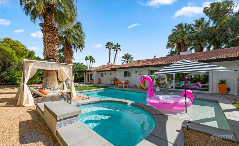 Welcome to a luxurious, newly renovated Palm Springs oasis! Relax and destress in the new salt water pool and oversized spa. Enjoy the sun on the daybeds or the shade underneath the cabana lounge with fire pit. Enter into this exquisite retreat with open living and dining rooms, with a welcoming 16 foot glass wall to the backyard. The high end interior provides a feast for your eyes. The kitchen has top of the line appliances. We also offer a private chef (add.cost) Message us here to book