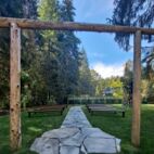 A Secluded Riverfront Estate with Modern Comforts & Timeless Style Set on 3.4 acres in a peaceful forested setting, this private estate features over 300 feet of river frontage and offers a unique blend of Northwest charm and natural beauty. A handcrafted Victorian-style home serves as the centerpiece, surrounded by towering evergreens, landscaped grounds, and several versatile outbuildings. Living Spaces As you cross the gated bridge, you're welcomed by a beautifully crafted Victorian-style home, offering nearly 2,700 sq ft of inviting living space. Built in 1987, the residence features: Three spacious bedrooms and 2.5 bathrooms A warm, open living room with a wood stove and seamless access to a covered porch for year-round enjoyment Handcrafted shingles and custom woodwork throughout A large primary suite with a private deck and sweeping views of the river Renovated Guest Suite Above the Garage (2017) A highlight of the estate is the fully renovated accessory dwelling unit above the four-car garage, complete with: Private bedroom and full bathroom Gourmet kitchen and open-concept living space Private deck with scenic views Dumbwaiter system for added convenience Separate entrance for privacy and flexibility Venue Spaces 1. Riverfront Ceremony Area A natural stone path leads through the trees to a cedar-log arch beside the river, creating a romantic, rustic setting Accommodates up to 120 seated guests 2. Riverside Dining & Reception Area A 2,000 sq ft tented space located right by the river, ideal for receptions and celebrations Includes: Concrete dance floor Rolling steel and marble bar Large fire pit with hand-sawn log benches All tables and chairs provided—round dining tables, head tables, buffet stations, and white resin folding chairs A casual outdoor play area with lawn games such as badminton, cornhole, and oversized Connect 4 3. Two Distinct “Getting Ready” Spaces Barn Suite: 800 sq ft with four lighted makeup stations, full-length mirrors, ample seating, and access to a private courtyard River Cabin: A cozy, open-walled cedar retreat with a changing area, lounge space, dartboard, and river views Guest Conveniences & Amenities Parking: On-site capacity for up to 65 vehicles Restrooms: Four rustic, cedar-cabin-style restrooms, including one ADA-compliant facility Audio Equipment: Two Bluetooth-enabled speakers and two wireless microphones Party Essentials: On-site refrigerator, garbage disposal, and Wi-Fi included