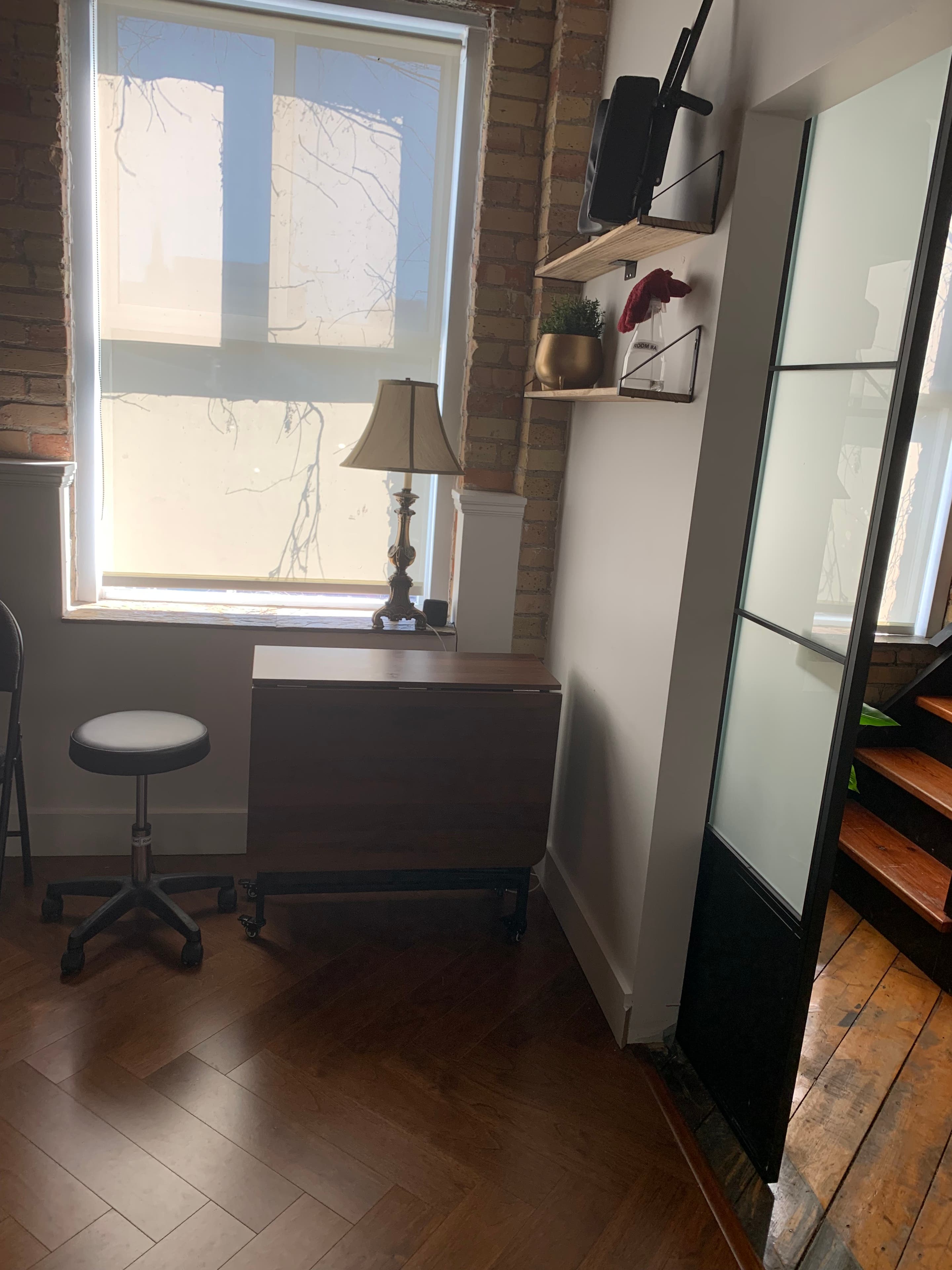 Downtown space for yoga or dance purposes. Pilates, treatment room, physio, massage, RMT, psychotherapy, reiki, THIS IS ONLY ONE ROOM BEING RENTED. SO YOU WILL HAVE ACCESS TO ONLY ONE ROOM AS SHOWN ON THE PHOTOS. Photos show different iterations of the SAME room so you get an idea of what is possible. You can also use common facilities like bathroom and kitchen but it's not exclusive use since other people will have access to it at the same time as you. WE HAVE OTHER SPACES AVAILABLE AT THE SAME LOCATION - SEE OUR OTHER LISTINGS FROM THE PROFILE. -------- OTHER LISTINGS (COPY AND PASTE LINKS IN YOUR BROWSER): 1. https://giggster.com/listing/beautifull-gym-and-workout-space-in-toronto 2. https://giggster.com/listing/downtown-loft-space-for-photoshoots-and-events 3. https://giggster.com/listing/fully-equipped-pilates-room 4. https://giggster.com/listing/cozy-and-relaxing-yoga-studio 5. https://giggster.com/listing/yoga-studio-dance-space-private-fitness-room 6. https://giggster.com/listing/bright-living-space-with-wooden-floor 7. https://giggster.com/listing/bricked-layered-yoga-studio