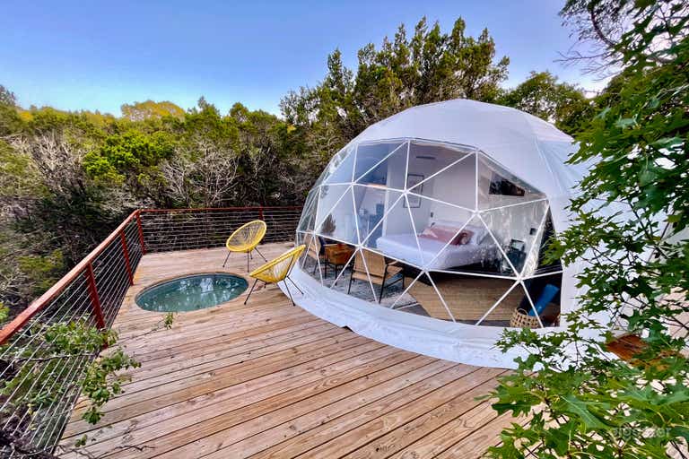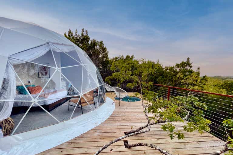 Yoku @ Missing Hotel will allow you to star gaze through the glass roof in this epic modern cabin. Overlook our 100-acre Hill Country property while floating in the treetops. Cool down in your private plunge pool. Say hi to our mini cows! Grill a feast on the fire pit & enjoy sunset dining on the huge deck. This rustic luxury villa is tucked away off the winding paths & arranged strategically to ensure privacy & total nature immersion. It’s elevated camping with the comforts of home.
