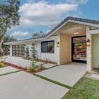 Single-story modern masterpiece tucked away amid gentle slopes? This fully renovated 5-bedroom, 3-bath residence blends architectural elegance with everyday functionality on a private 0.37-acre lot, surrounded by mature trees and serene hillside views. From the moment you arrive, sleek black-framed dual-pane windows and a custom metal pivot door set the tone for the design-forward touches throughout the home. A striking stone archway and chandelier welcome you into an open floor plan filled with natural light from strategically placed skylights. Smooth drywall, soothing neutral hues, luxury vinyl flooring, and contemporary finishes create a clean, organic aesthetic that’s both stylish and comfortable. The generous living room, centered around a sculptural bespoke plaster fireplace, flows effortlessly into a nearby dining alcove and kitchen designed for conversation and culinary endeavors. Cook with confidence using the French-inspired range beneath a handcrafted hood, surrounded by quartzite countertops, abundant cabinetry, stainless steel appliances, and a multi-seater island perfect for casual gatherings. A new mudroom with a substantial pantry adds to the home’s many flexible spaces. Retreat to the primary bedroom with patio access and a spa-like ensuite featuring an oversized frameless shower with dual showerheads. A junior suite offers its own exterior entrance, pass-through bath, and separate sitting area—ideal for guests or multi-generational living. Every bath and closet door is customized, and each shower features luxurious tile work, showcasing refined craftsmanship throughout. Stunning French and sliding glass doors open to a secluded courtyard or custom-landscaped backyard where synthetic grass, new concrete accents, and serene views create an idyllic outdoor escape. The fenced side yard is perfect for weekend BBQs or evenings under the stars. This home is conveniently located near shopping, entertainment, and nature trails, and offers access to award-winning schools in one of the area’s most sought-after communities. Experience the perfect blend of design, comfort, and character in this striking haven and imagine yourself calling it home.