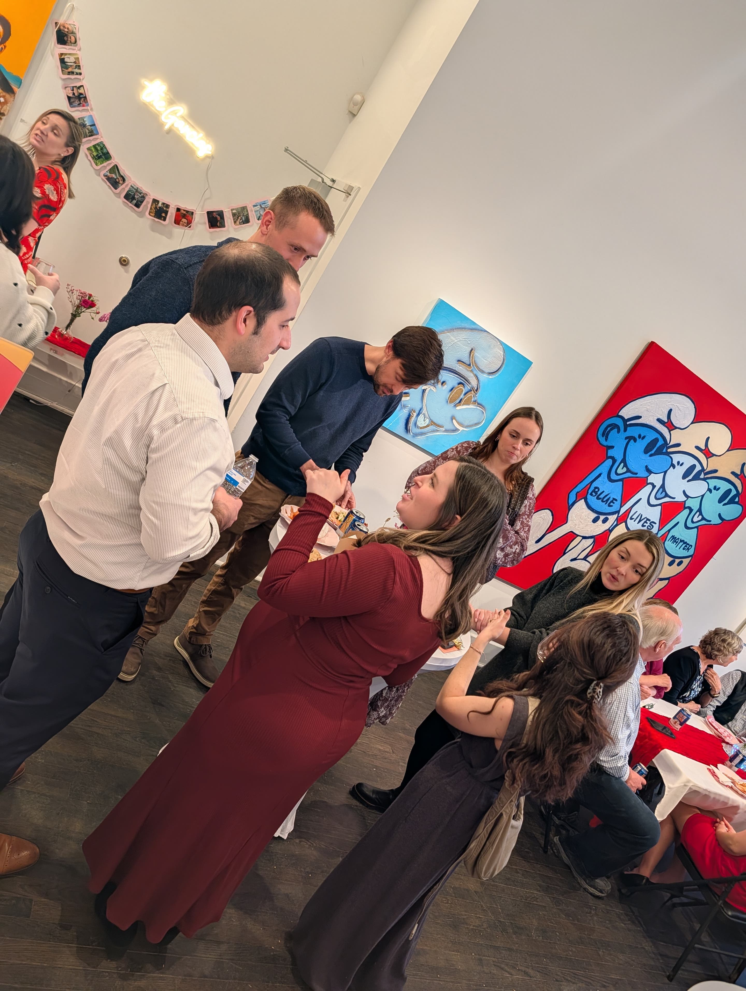 Premier gallery space is available for many events including private parties, corporate networking, workshops, panel discussions and more! The high ceiling (approx. 13") has industry standard track lighting with dimmers, providing flexibility to control the room ambience. The front facade and windows provide perfect daylight, in addition to the gallery lighting system. Capacity is 50-75 seated / 150-200 standing / 250+ come/go traffic, but it also feels like an ideal environment for an intimate evening with as few as 20 guests. The location is ADA-compliant, with two handicap accessible drinking fountains, and one unisex toilet. The back of house/ office includes an industrial sink and full-size refrigerator. Our space is on the first floor of a renovated building that was once Glees Exchange, a hardware store with an above apartment by John Glees. It can be segmented into three parts: the front/main gallery, kitchen & restroom, and back patio. There is a small staff-only loft in the main gallery. Entrance: Our entrance is step-free, where the door opens 33 inches wide with a lever handle. Staff are typically visible and available to assist as you enter. Please note public guest entry is through the front door along Gratiot Avenue. Additional Doors: There is a 60 inch wide sliding door between the main gallery space and the kitchen & restroom. This door is typically kept open. The restroom door has a 33 inch wide opening. The back door leading to the patio is original to the building, and 38 inches wide with no steps. Restrooms: Our restrooms are ADA accessible. The door has a 33 inch wide opening and a lever handle. There are two grab rails on the wall to the left of the toilet, and one behind. We have scent free soap available. Water: We have two ADA compliant water fountains between the kitchen and the restroom available for visitors. During exhibition openings and programming, we typically keep a pitcher of water available. Seating: We keep two backless benches out in the gallery during exhibition hours. One is typically kept at the front near the door. The benches are clear and made from thick durable plastic where staff can assist if you’d like them moved. We also have folding chairs available upon request. Environment: Our floors are non-glare dark stained wood with white walls and very high ceilings. The intimate size of the space and tall ceilings mean that sounds such as footsteps and voices carry during busy times. Lighting: Our main gallery space is often bright with both natural light and a LED track lighting system. Lightbulbs are often tilted to highlight both the artwork and our space. The track lights use dimmer switches, so if you’d like us to adjust the lighting please alert staff. Our kitchen and bathroom spaces use overhead fluorescent lights that are typically kept on. The back patio is lit at night. Hallways: The narrowest hallway measures 40.5 inches. This is between the kitchen & restroom. Service Animals: We welcome service animals in our space. There are grass lots surrounding our building for animals to use. Please alert staff if you need support with a seat and space for your animal to do their job. Back patio: The patio is accessible through the exit door in the back of the building. The door is extra wide and step-free. The back patio is covered, paved and lit at night. There is informal seating available on the patio.